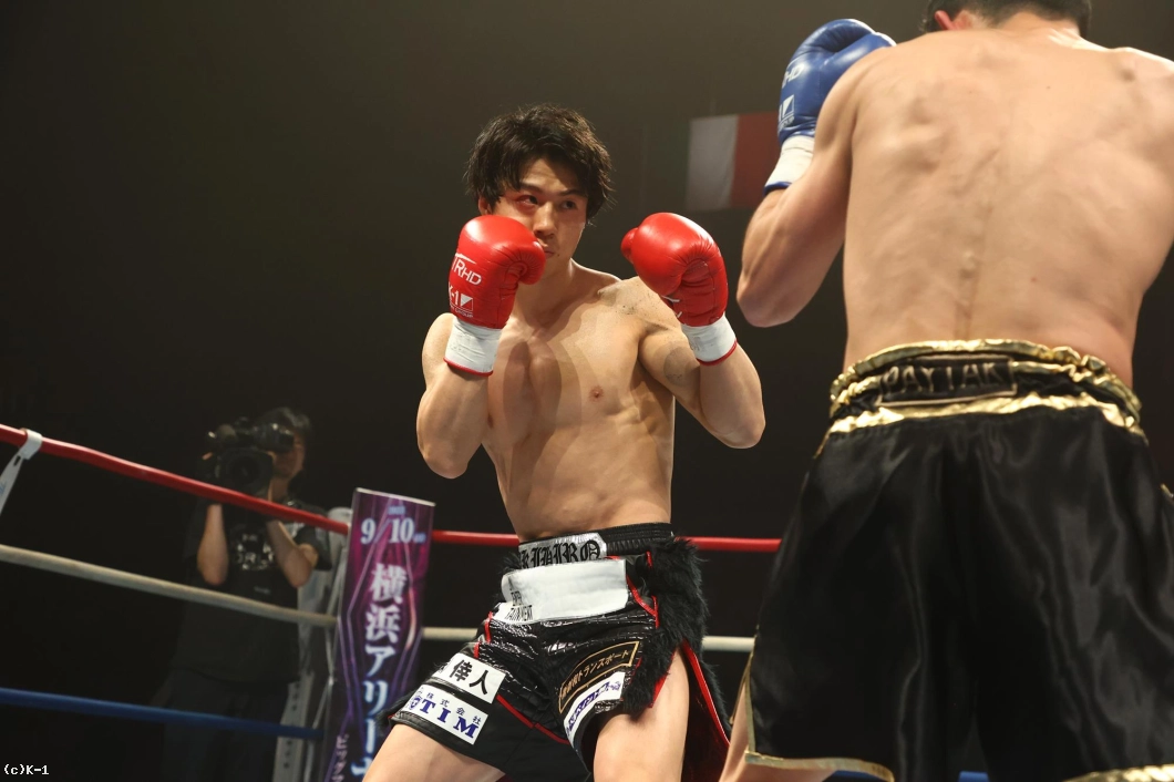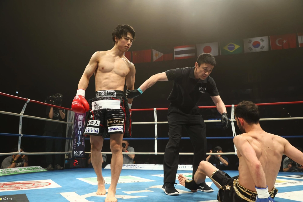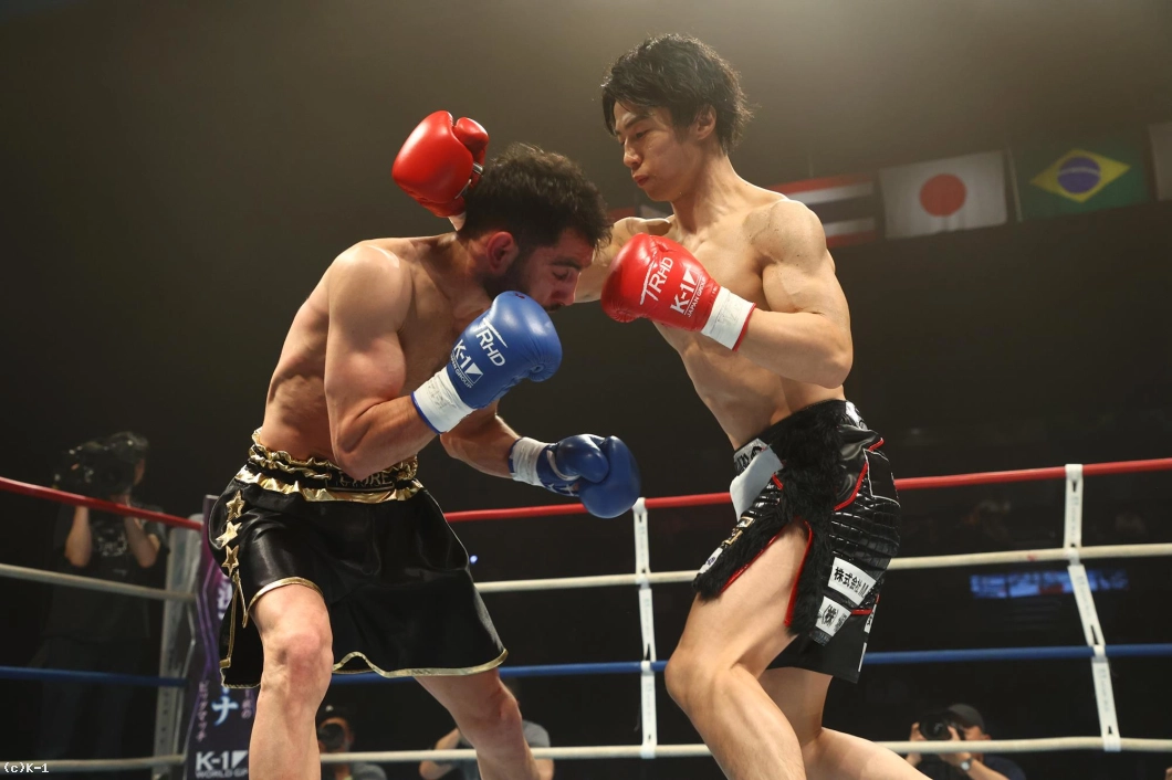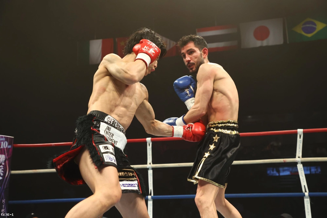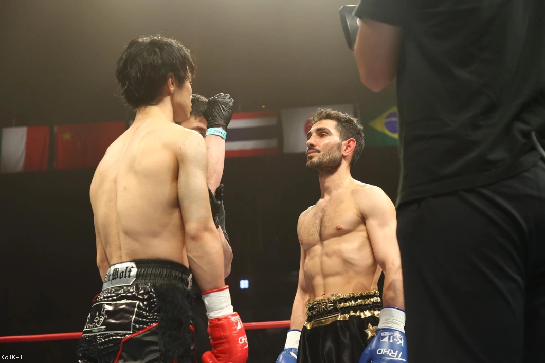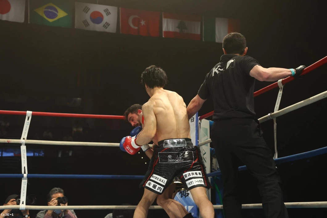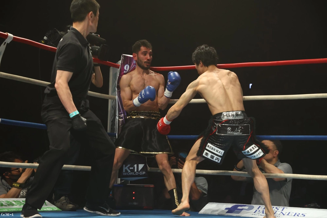 1R、金子はジャブと右ローでカラジャをけん制。そして右ストレートを打ち込み、いきなりダウンを奪う。立ち上がったカラジャに左ボディを効かせ、ボディに飛びヒザ、続いて右ストレートをフォローし、2度目のダウンを奪う。金子はボディへの飛びヒザ、左ボディ、左ミドルと当て、最後は右ストレートから左フックを返し、初回KOを決めた。