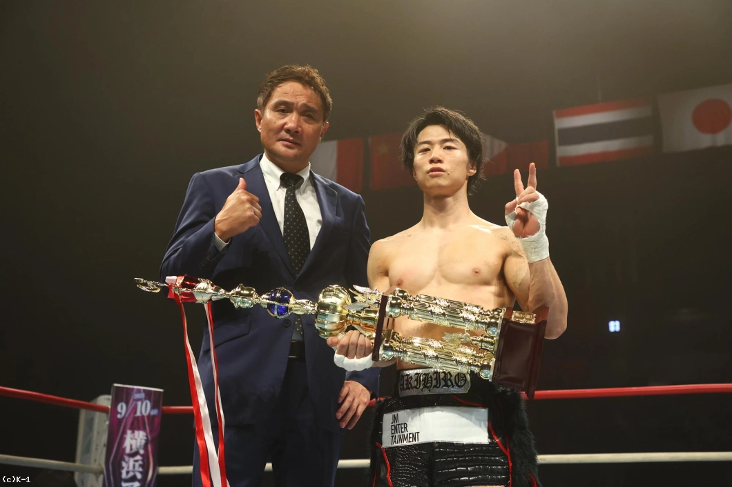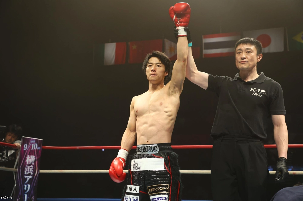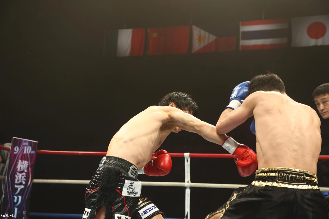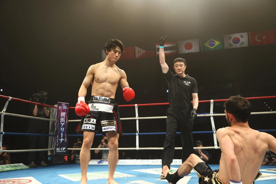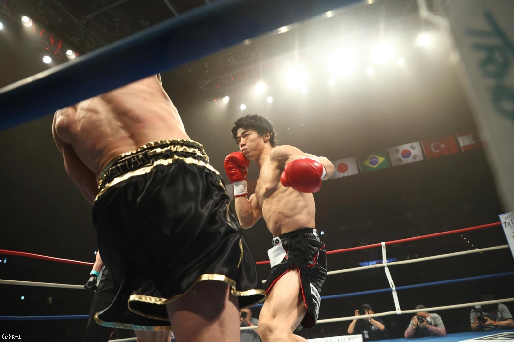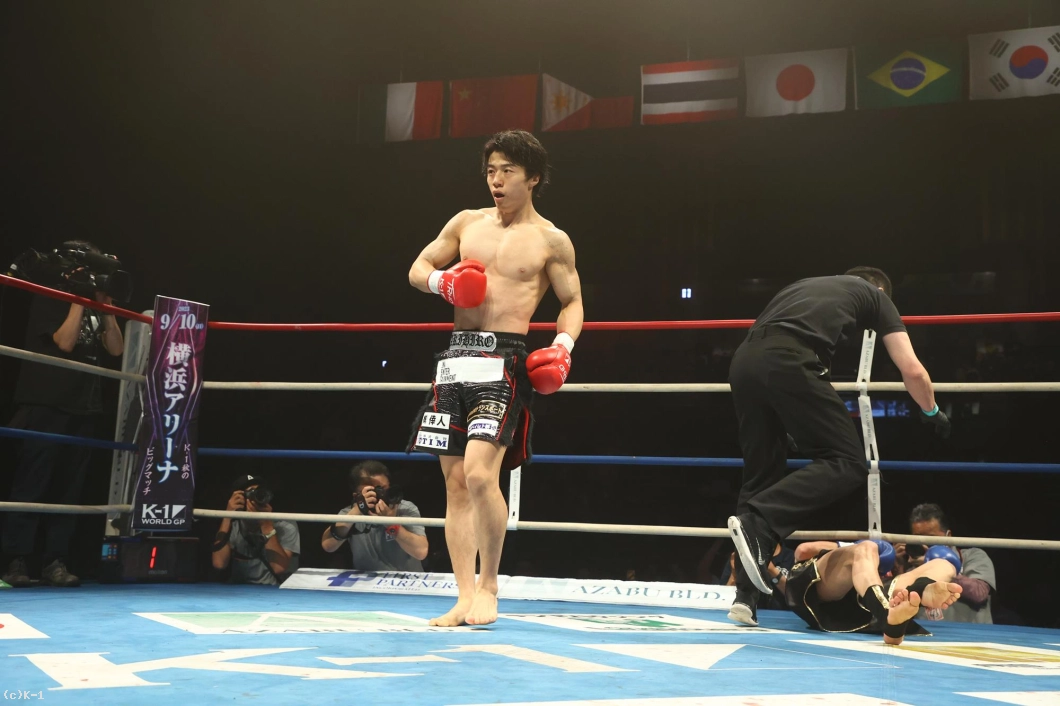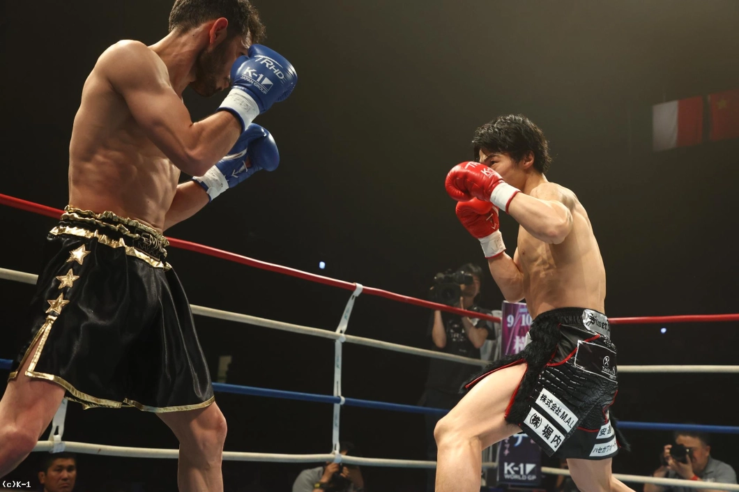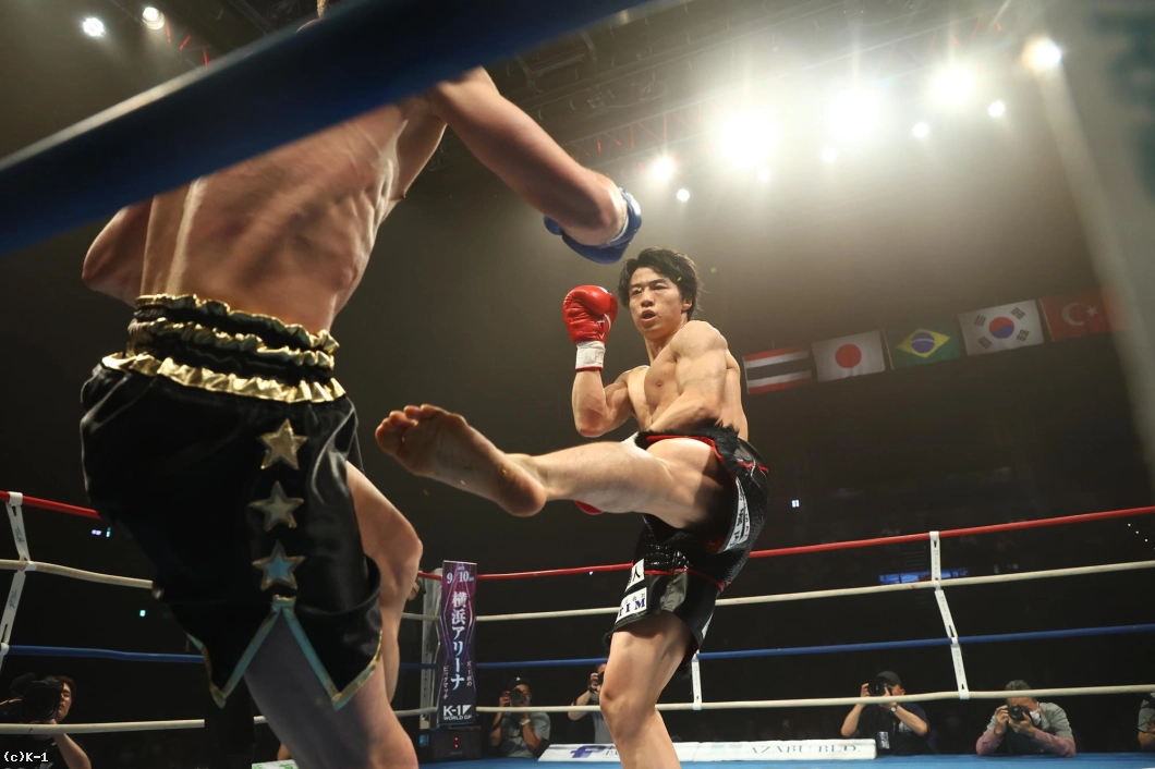 1R、金子はジャブと右ローでカラジャをけん制。そして右ストレートを打ち込み、いきなりダウンを奪う。立ち上がったカラジャに左ボディを効かせ、ボディに飛びヒザ、続いて右ストレートをフォローし、2度目のダウンを奪う。金子はボディへの飛びヒザ、左ボディ、左ミドルと当て、最後は右ストレートから左フックを返し、初回KOを決めた。