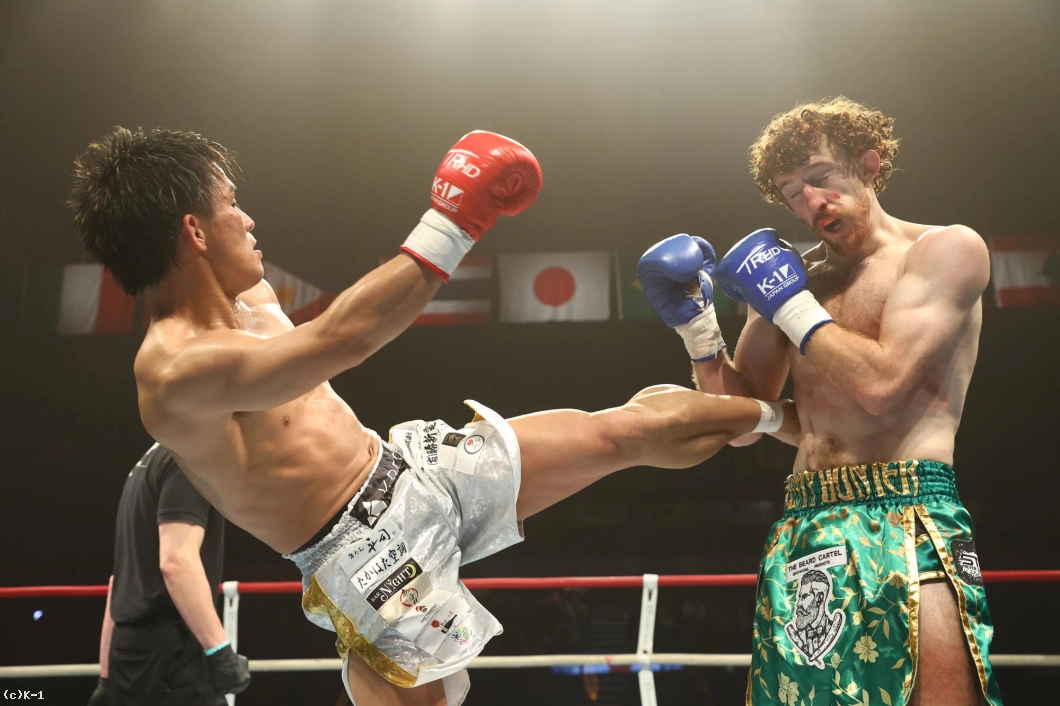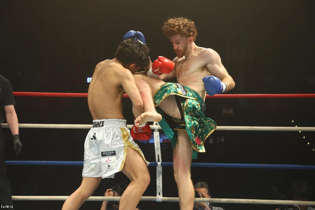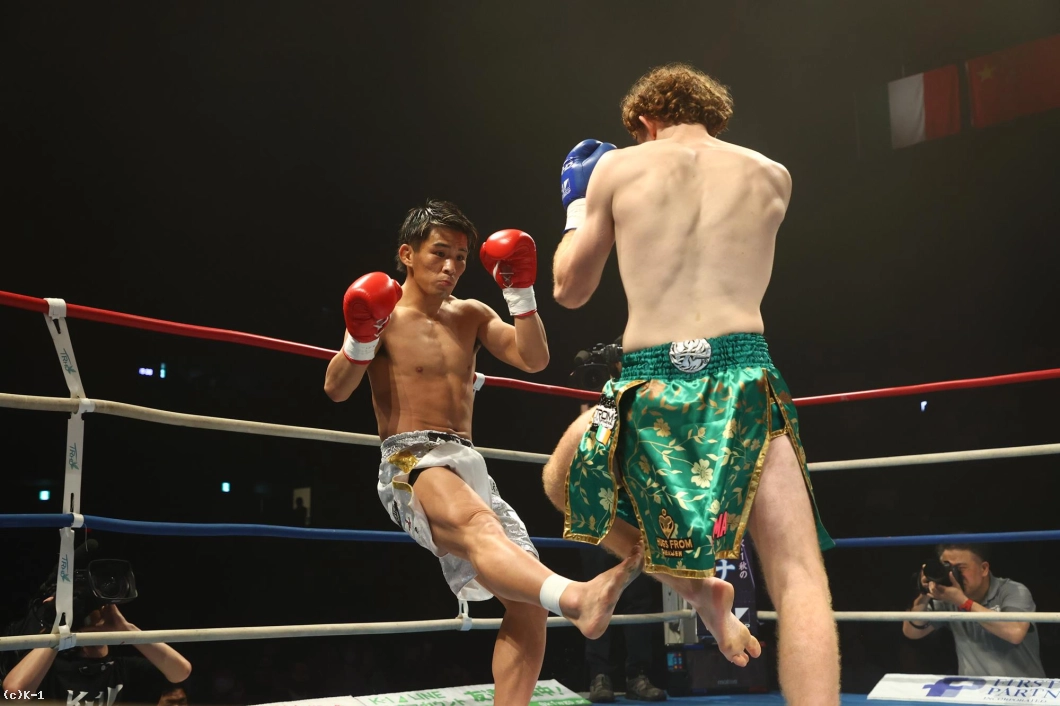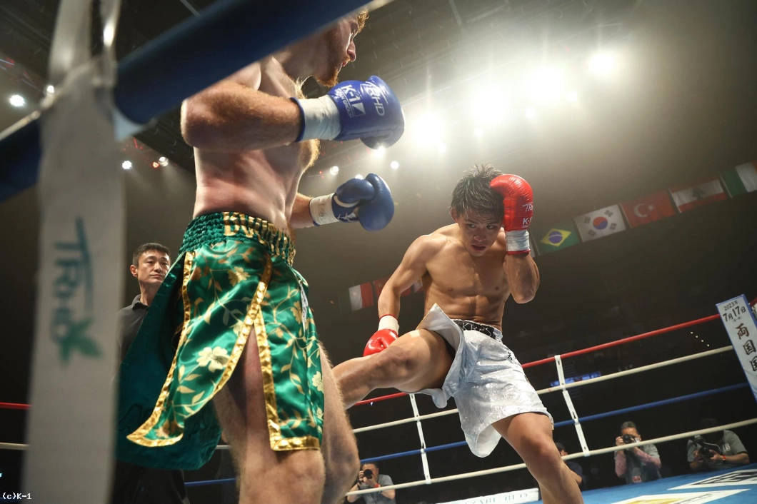 1R、与座がローを入れるが、クラークはコーナーに詰めてフック。しかし与座はこれをブロックし、三日月蹴りでクラークのボディをとらえる。与座はさらに三日月蹴りをボディに決め、飛びヒザ、脚へのカカト蹴り、バックキック、カーフキックとクラークを攻める。与座は攻めを止めず、ハイキック、ミドル、パンチの連打とノンストップで初回を終える。