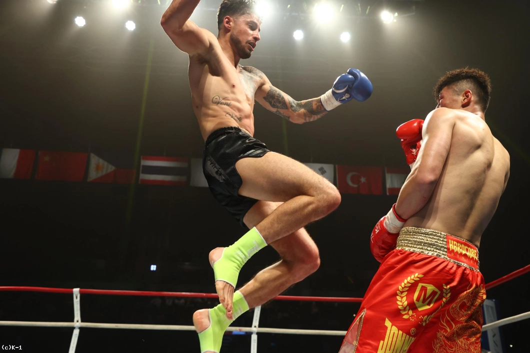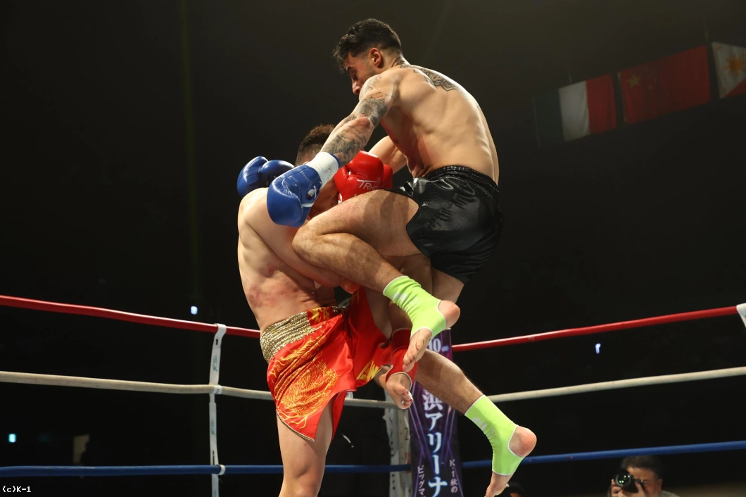 1R、ハッサンは顔面前蹴りでホイの体勢を崩し左フックを連打。ホイもジャブ、前蹴り、ローと攻撃を散らす。ハッサンもしかし飛びヒザ、顔面前蹴りと読みづらい攻撃を繰り出す。ホイもハイキック、ローと対抗する。ハッサンはホイのパンチをヘッドスリップしてかわし飛びヒザを放つ。
