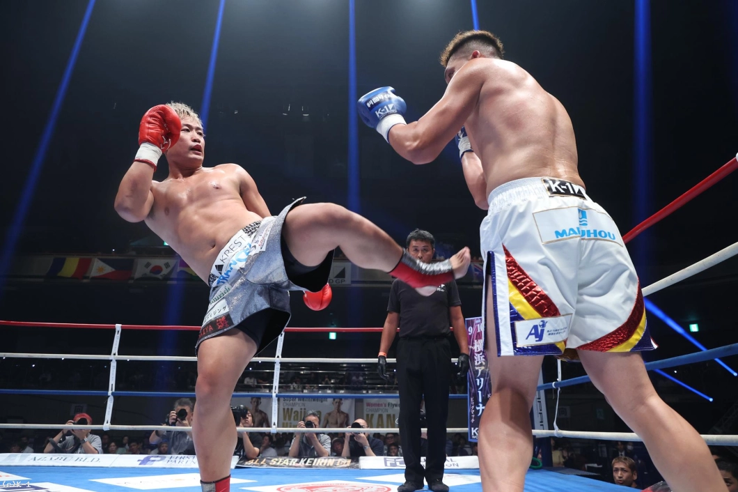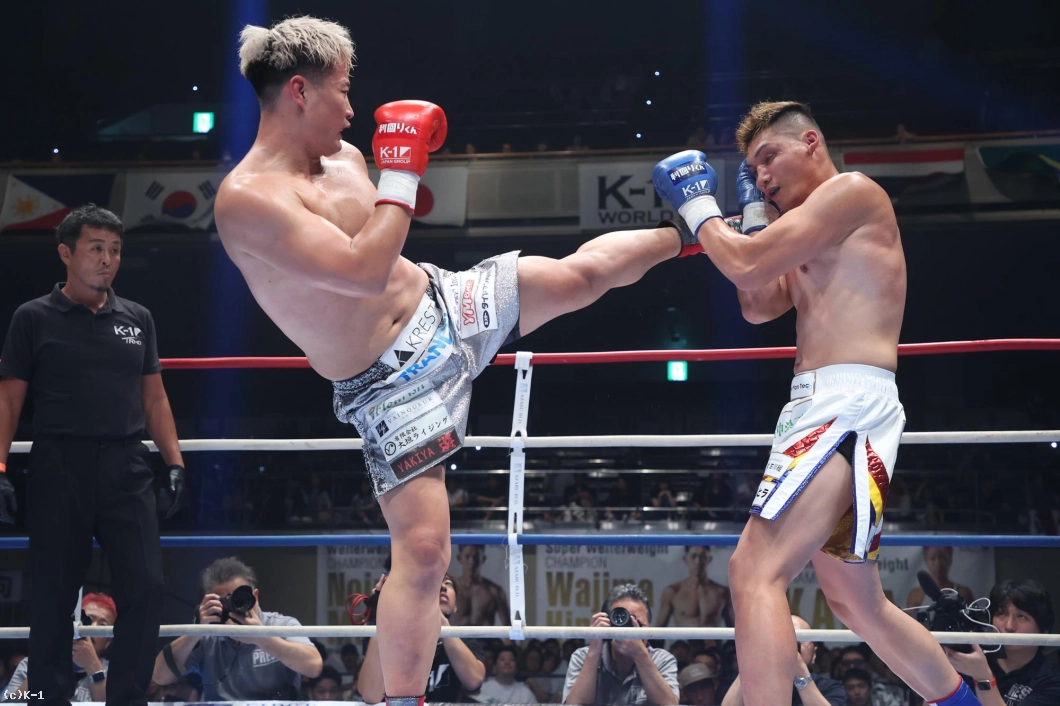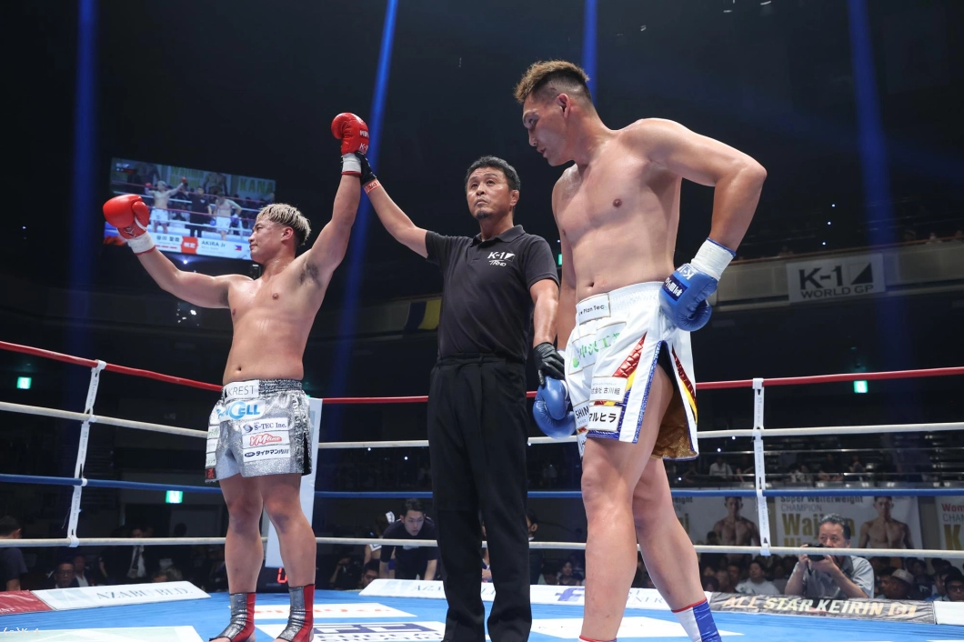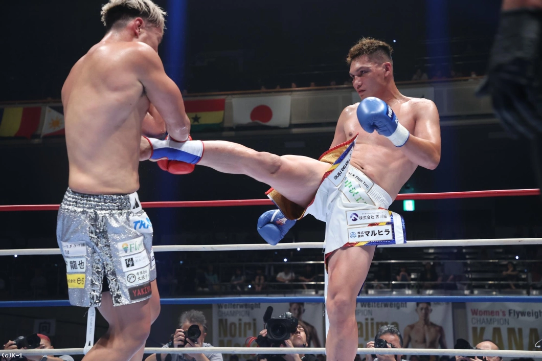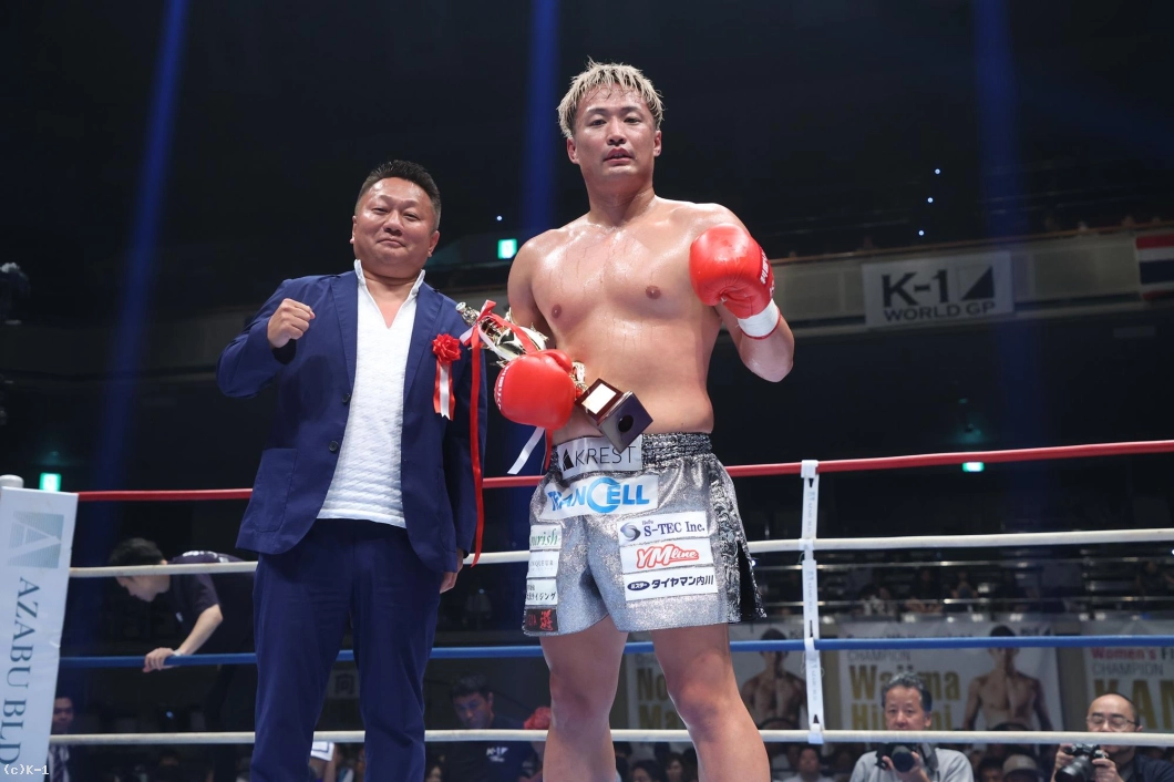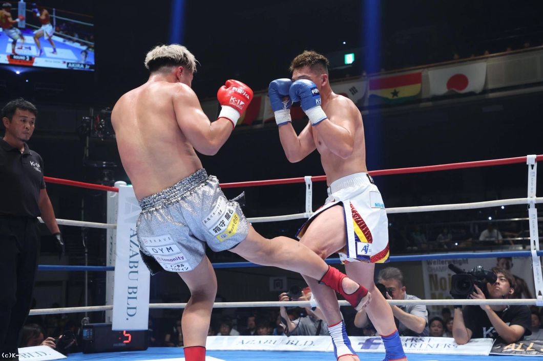 2R、谷川はプレッシャーを発してロープ際に追い込みカーフキック。そしてAKIRAのボディにヒザを打ち込む。左フックをもらった谷川だが、すぐに自身も左フックを返しハイキック。3Rも谷川はまずロー、カーフキックで行く。AKIRAはクリンチを振り払い右ストレートを決めるが、谷川はダメージを見せない。AKIRAはホールディングが多くなりフェリーから注意を受ける。判定は30-27、30-27、30-27の3-0で谷川。1Rにパンチでダウンを奪って勝利した。