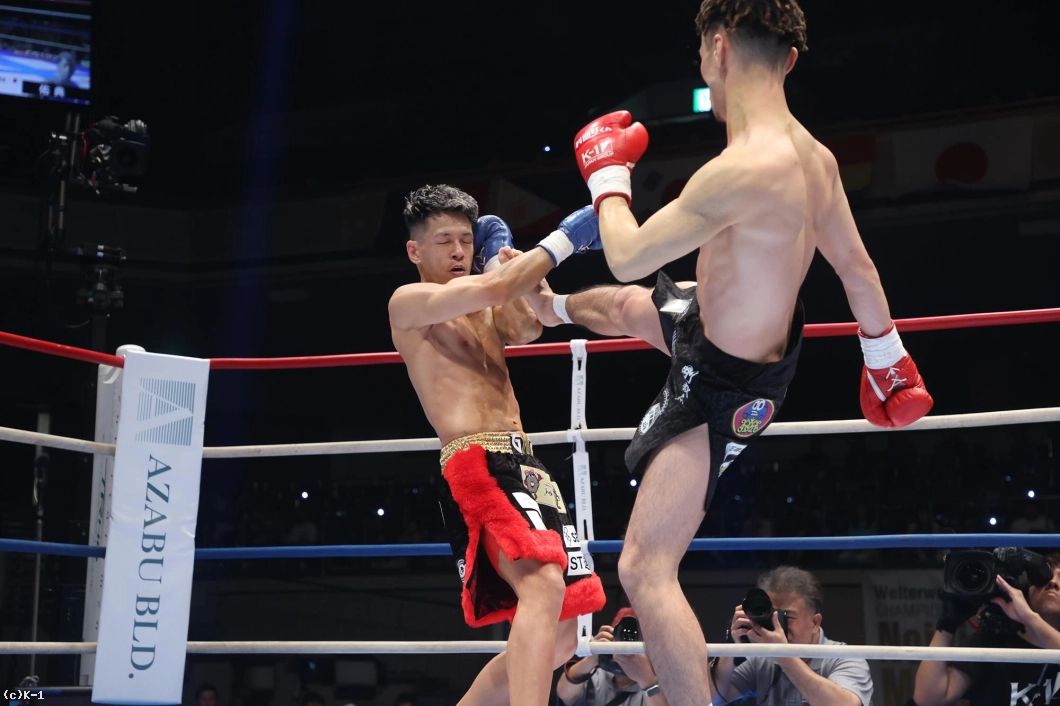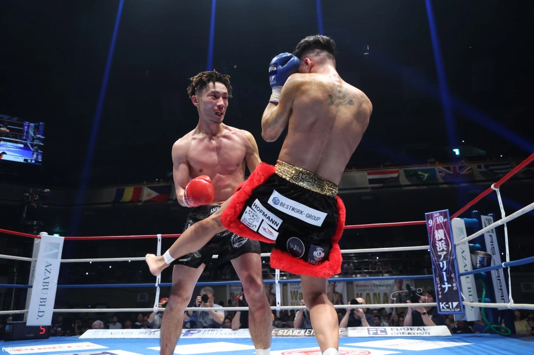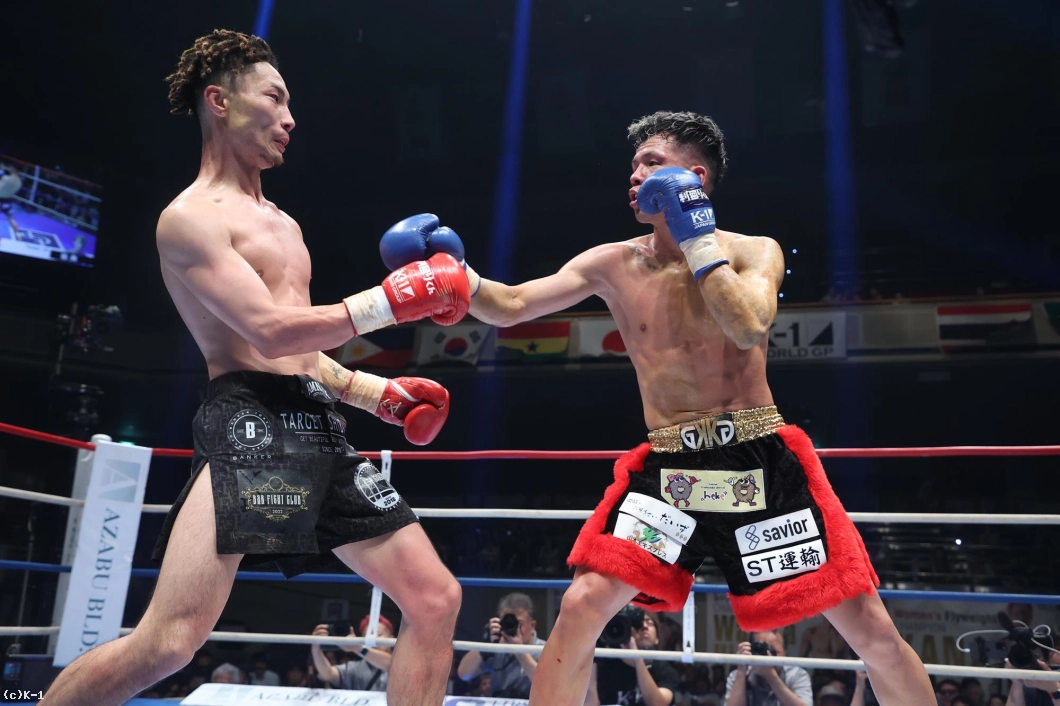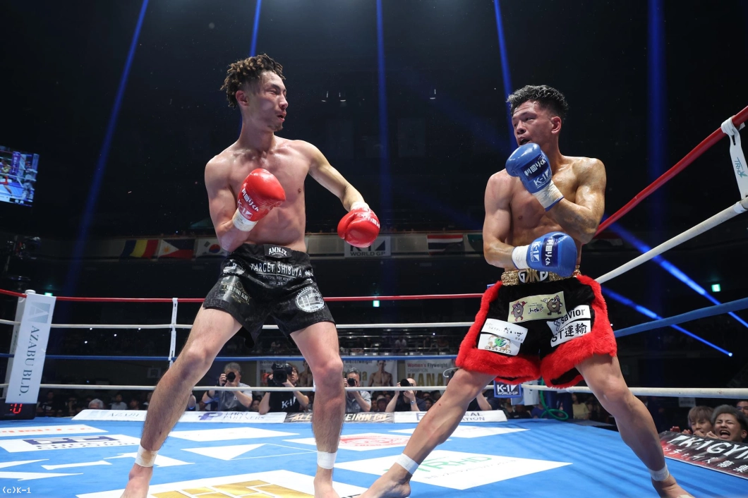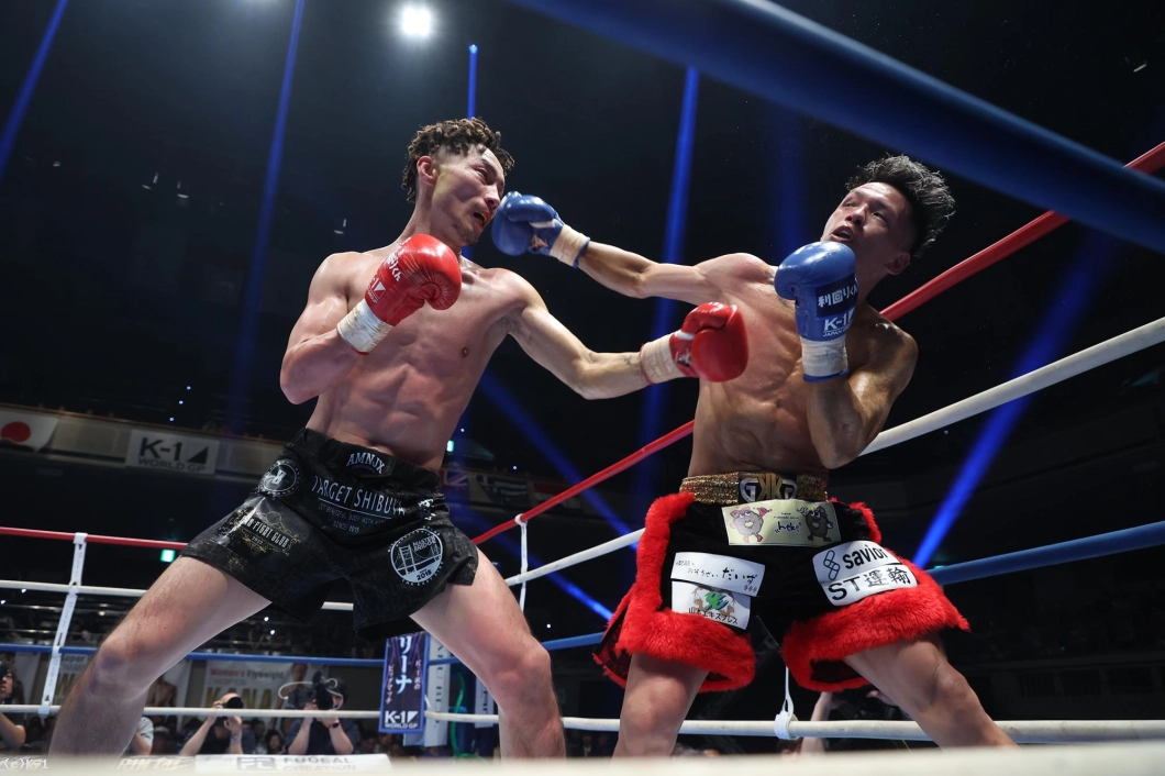 2R、佑典はボディへの前蹴りから左ストレート。だが篠塚もすぐ右ストレートを当て返す。その後は両者、頭を振って相手が強打するストレートを当てさせない。しかし終盤に篠塚がストレートを当てる。3R、佑典が左インローで篠塚を止めるが、篠塚が返した右ローがローブローとなってしまい一時中断に。再開すると篠塚はやはりプレッシャーかけていくが、今度は佑典が篠塚にローブロー。ラウンド終盤で再開。篠塚はジャブ・ストレートを放つが、佑典は外側から右フック・左クロスを放つ。判定は30-29、30-30、30-30で篠塚に1票も延長戦に突入となる。