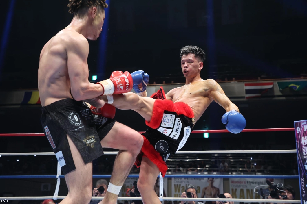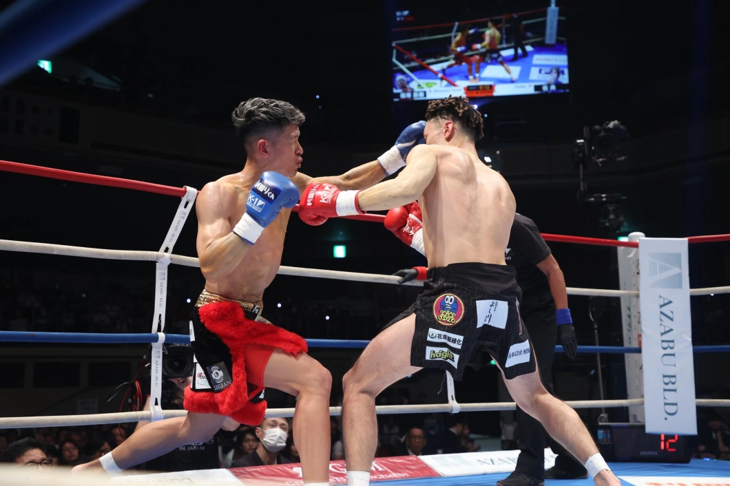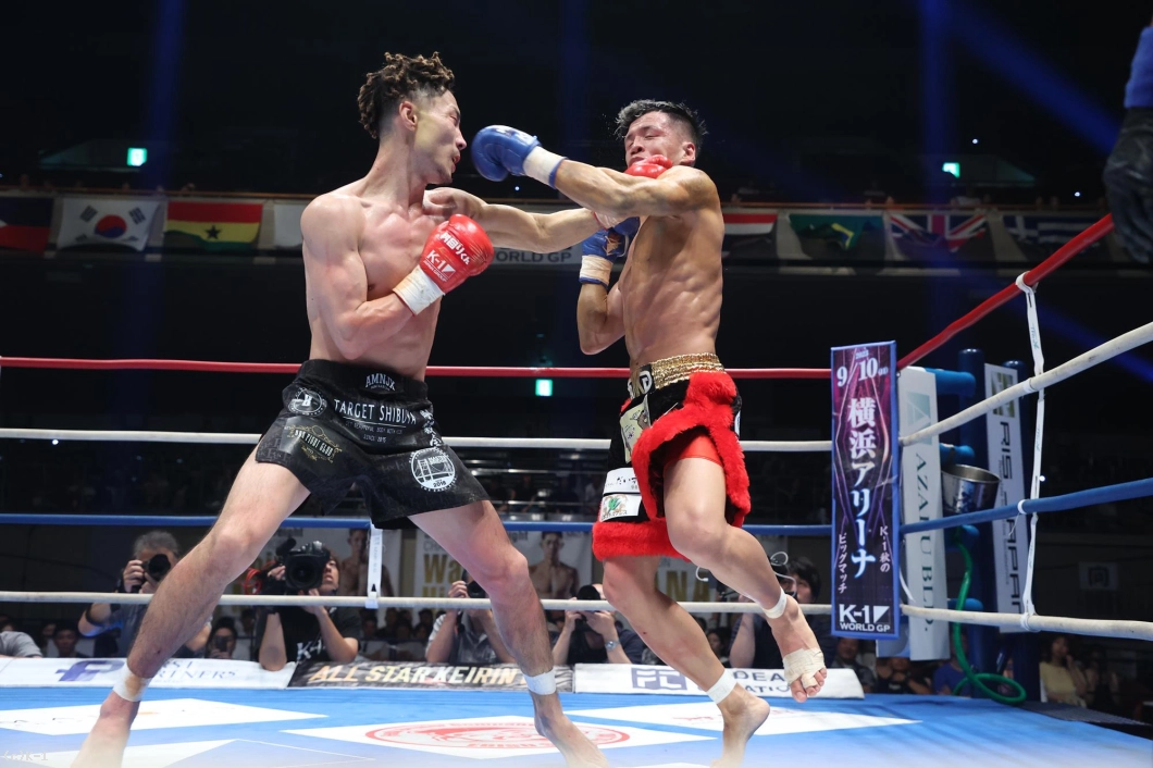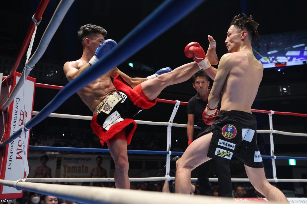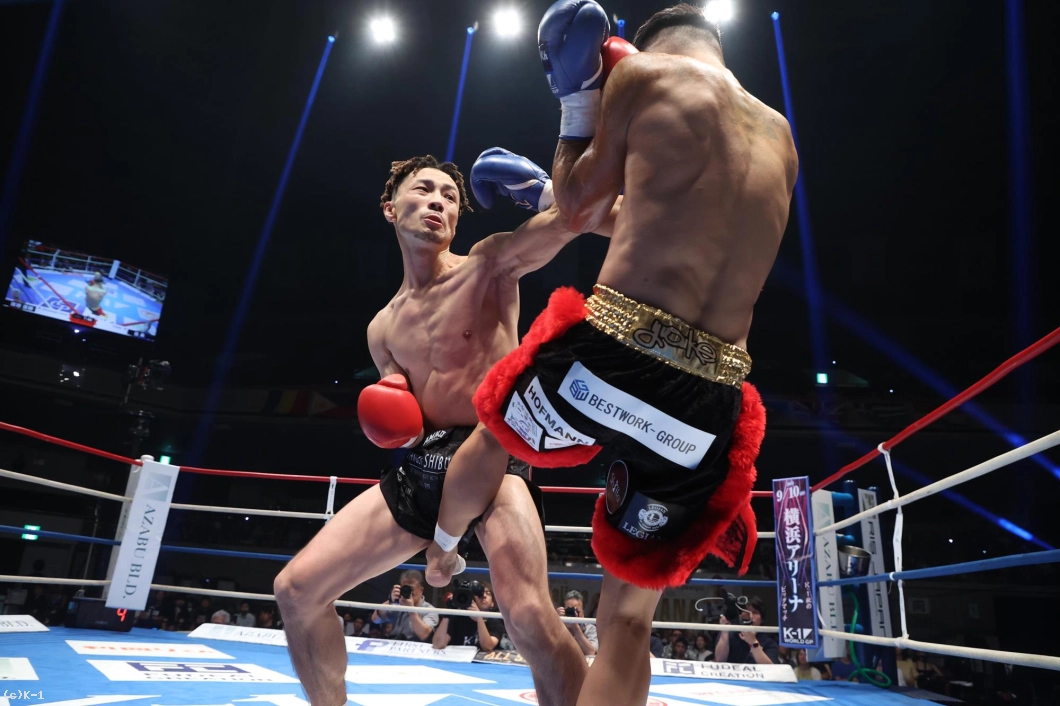 2R、佑典はボディへの前蹴りから左ストレート。だが篠塚もすぐ右ストレートを当て返す。その後は両者、頭を振って相手が強打するストレートを当てさせない。しかし終盤に篠塚がストレートを当てる。3R、佑典が左インローで篠塚を止めるが、篠塚が返した右ローがローブローとなってしまい一時中断に。再開すると篠塚はやはりプレッシャーかけていくが、今度は佑典が篠塚にローブロー。ラウンド終盤で再開。篠塚はジャブ・ストレートを放つが、佑典は外側から右フック・左クロスを放つ。判定は30-29、30-30、30-30で篠塚に1票も延長戦に突入となる。