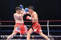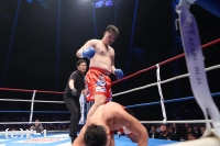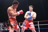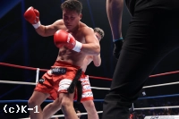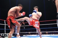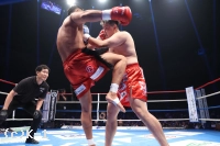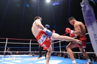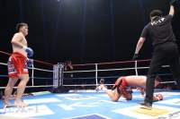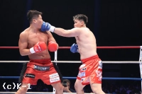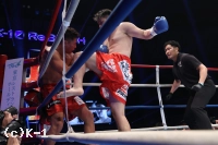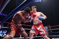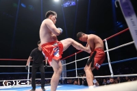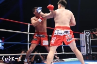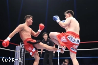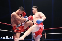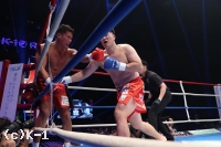 1R、K-Jeeは動き回りローキック。上田は前蹴りからローキック。K-Jeeはフックを放つも、ここは不発。上田は左フックから左ハイキックにつなげるも、前蹴りがローブローに。中断後、再開。ともにロ―キックを蹴り合う。K-Jeeの左右のパンチが入るも、ここは耐える上田。上田が前蹴り、吹っ飛ぶK-Jee。上田の前蹴りは強烈で、何度もK-Jeeが吹っ飛んだ。