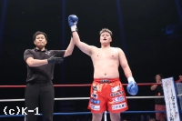 2R、K-Jeeは上田の前蹴りをかわす。だが、上田の左ハイキックでK-Jeeがダウン。立ち上がるも、打ち合いとなり、K-Jeeが再びダウン。パンチで詰める上田。K-Jeeもパンチを打ち返す。だが、上田が攻撃をまとめるとK-Jeeが三度目のダウンによるKO決着。K-1初挑戦で、KO勝ちの鮮烈デビューをはたした。