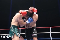 2R、カリミアンは近い距離で打ち合い。カリミアンの攻撃がアゴに当たると、クラウディオは下がる場面も。カリミアンの蹴りにクラウディオがフックで攻撃。カリミアンは動きながらローキック、これがローブローに。カリミアンはジャブついてフックを放つも、クラウディオは左フック。下がるクラウディオ。カリミアンの攻撃がローブローとなり、再び中断の場面もあった。カリミアンは、反則が多く減点1となった。