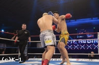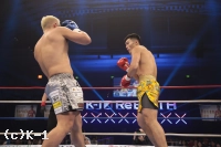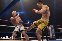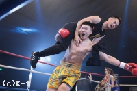 1R、リュウはプレッシャーをかけながら、三日月蹴り、カーフキック。谷川は足を使って回りながら、ローキック。リュウはハイキック。谷川は右のパンチで飛び込む。リュウは前蹴り、左のパンチ、さらに右ミドルキックを次々と出していく。リュウは前蹴り、カーフキック。谷川もローキックを返すも踏み込みが浅いか。そして、リュウは右ストレートを決めてダウンを奪う。尻もちをついた谷川は、ロープを頭にして立てない。そのままテンカウントを聞いた。