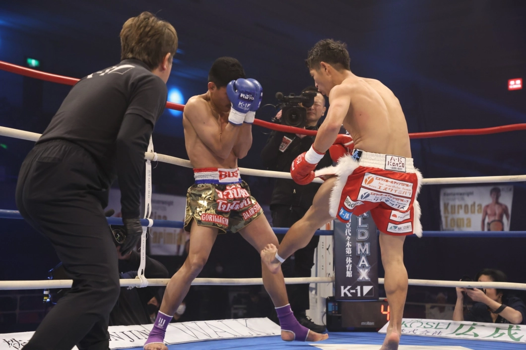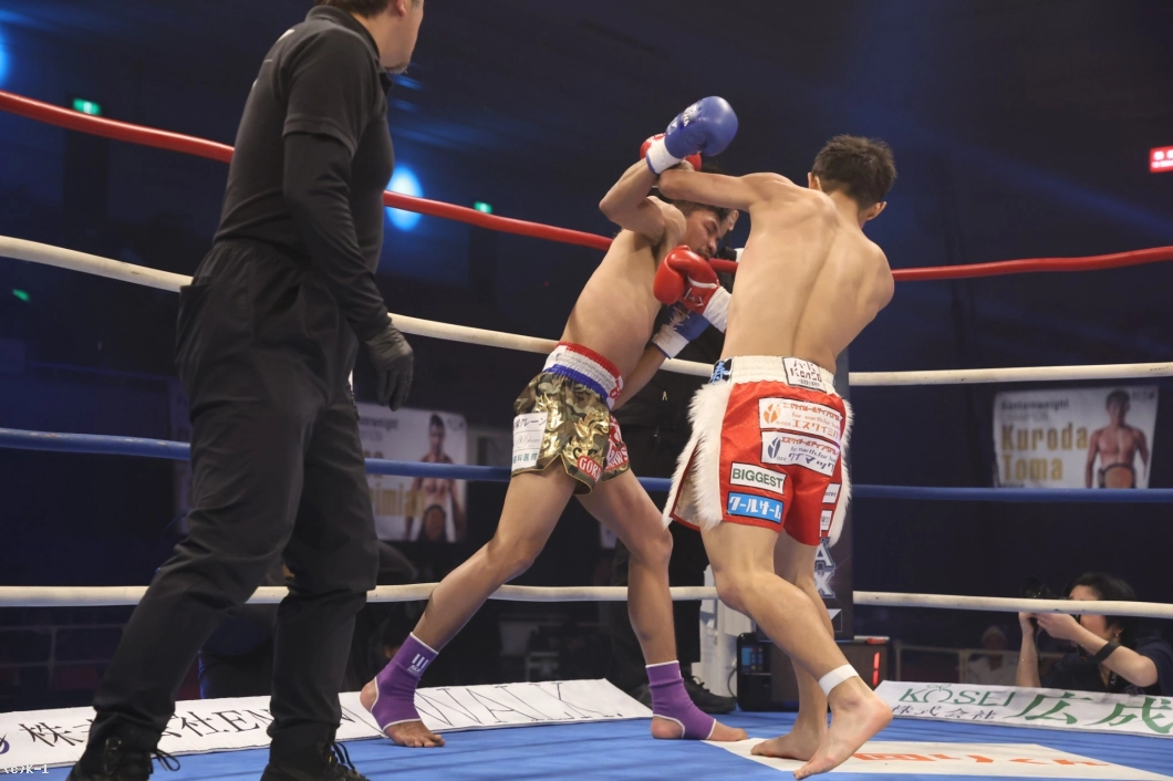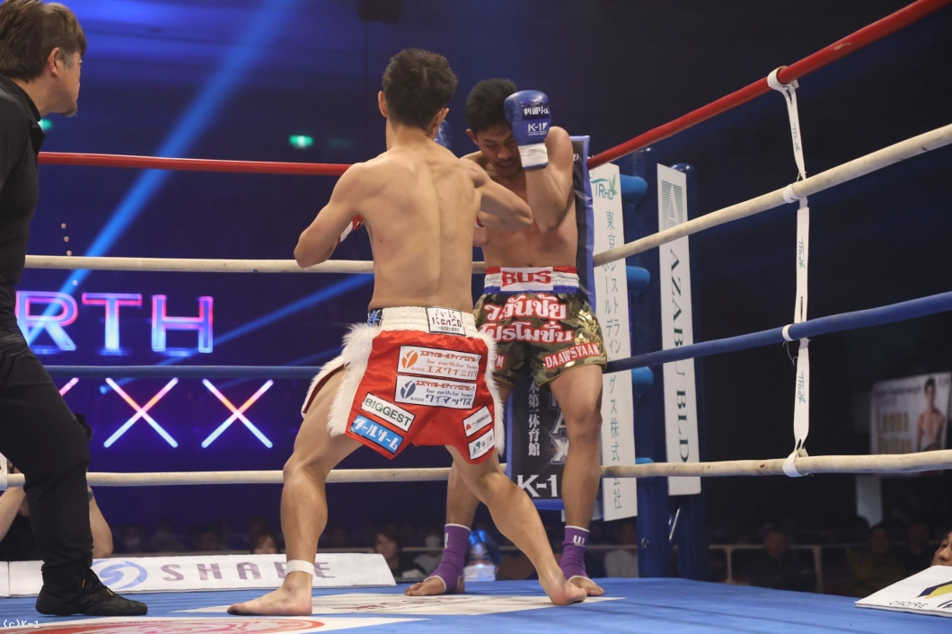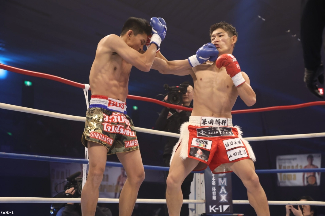 1R、サウスポー構えの兼田は前蹴り、右のジャブを突き刺しにいく。ダウサヤームは右ハイキック。兼田は左のパンチでいきなりダウンを奪う。立ち上がったダウサヤームに右を入れる兼田。右から左のパンチで攻める兼田。パンチ連打で二度目のダウンを奪った。さらに兼田は、パンチをまとめて三度目のダウンを奪い、KO勝ち。短期勝負で決着をつけた。