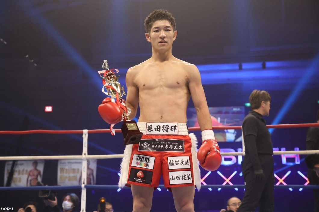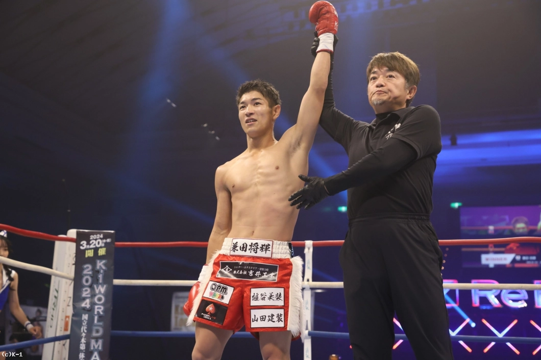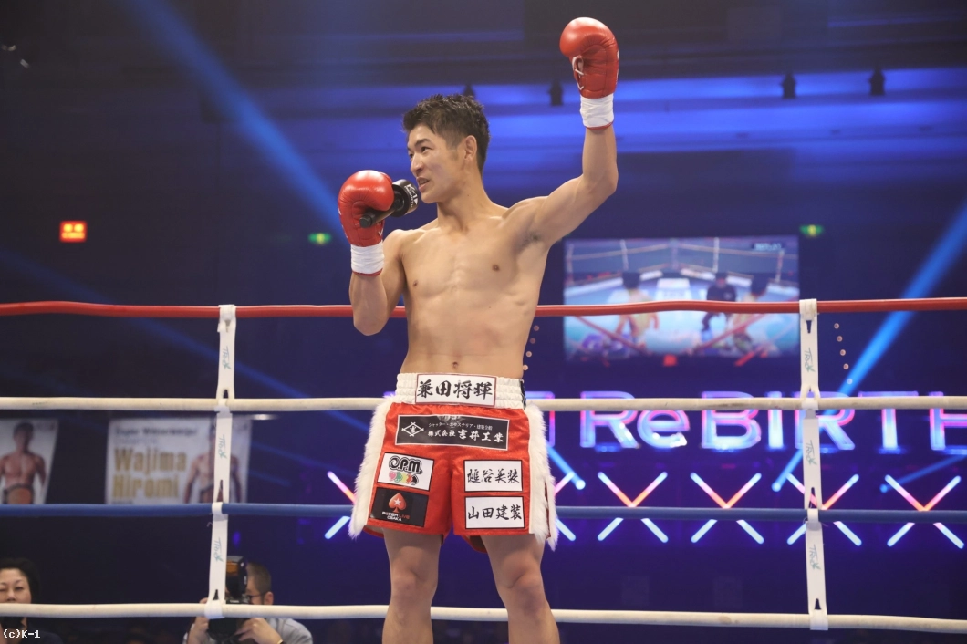 KO勝ちを収めた兼田は「この選手のことは、軍司選手が倒してないでしょう。僕は1Rで倒しましたよ。もう、やるしかないでしょう。1年ぶりに大阪で試合ができてこれからもK-1で試合をしたいので、応援をよろしくお願いします」と軍司泰斗チャンピオンへの対戦をアピールした。