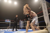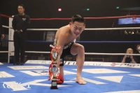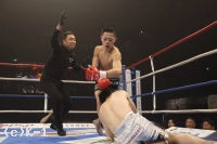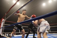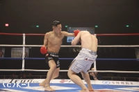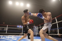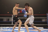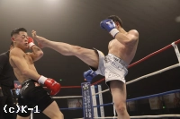 1R、サウスポー構えの松本は左を伸ばす。さらにロ―キック。魁志は右から左にパンチをつなげる。松本は右を合わせて、ロ―キックでダウンを奪う。さらにパンチ連打で二度目のダウンを奪い、KO決着。松本が1Rで倒した。