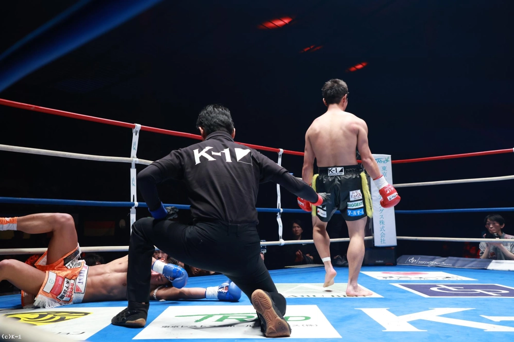 2R、兼田は前蹴り、戸井田は右、左とパンチを畳みかける。兼田はカーフキックも、戸井田の右が入る。ヒザ蹴りの戸井田。さらに戸井田は右ハイキック、左のパンチで兼田が棒立ちに。だが、兼田が右のボディ、左ストレートでダウンを奪い、KO勝ちとなる。兼田が逆転KO勝ちを収めることとなった。
