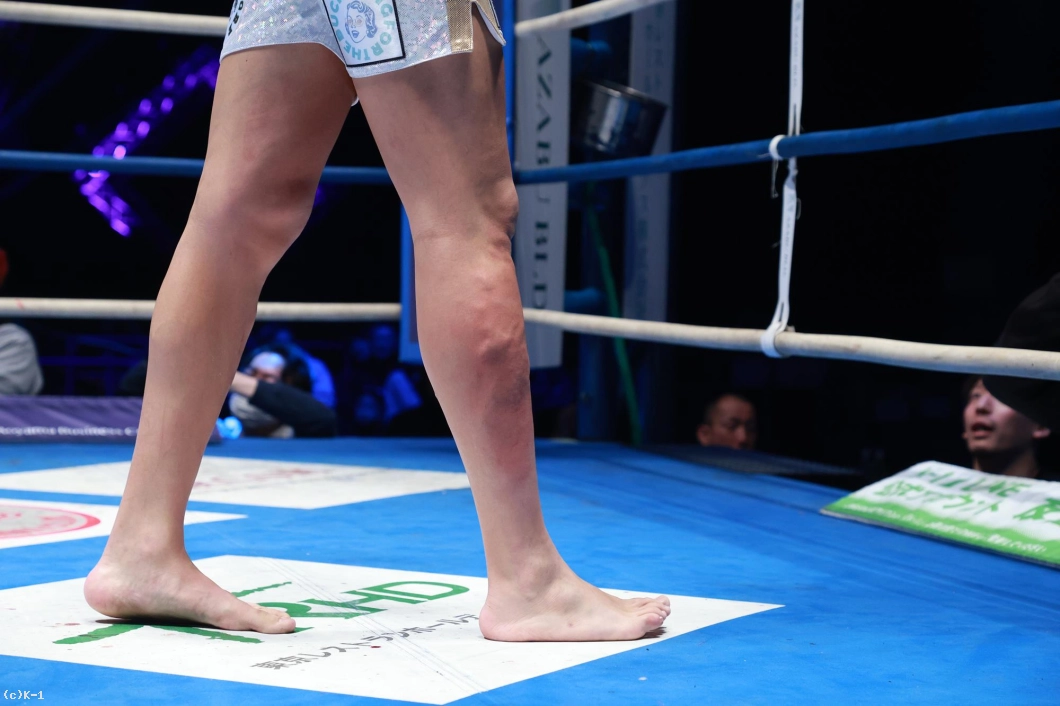 1R、互いにサウスポー構え。卜部はローキック、右ミドルキックを繰り出す。鈴木は右ミドルキックを蹴り返す。卜部は右ミドルキックで止める。さらに卜部はカーフキック。前蹴りからカーフキックの卜部。さらにカーフキックでダウンを奪う卜部。立ち上がる鈴木は左右のパンチで前へ出る。卜部のカーフキックに合わせて左でダウンを奪う鈴木。会場が一気に盛り上がった。