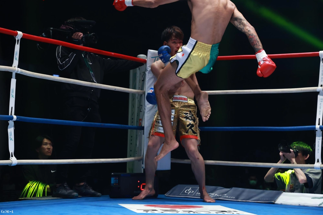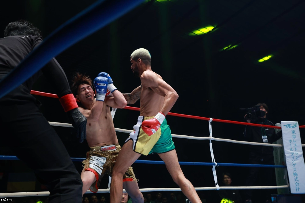1R、サウスポー構えのシルバはワンツー。璃久は足を使いながら左ローキックを走らせる。シルバは左ミドルキックをヒット、右アッパー、左ハイキックを放つ。さらに右から左のパンチでダウンを奪うシルバ。立ち上がった璃久に右ストレート、右ハイキックで攻撃。璃久は左目上から出血でドクターチェックに。傷口が深すぎたためかドクターストップとなり、シルバのTKO勝ちが決まった。