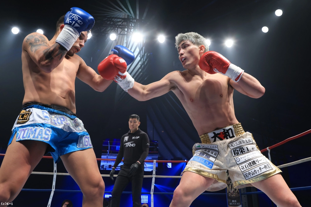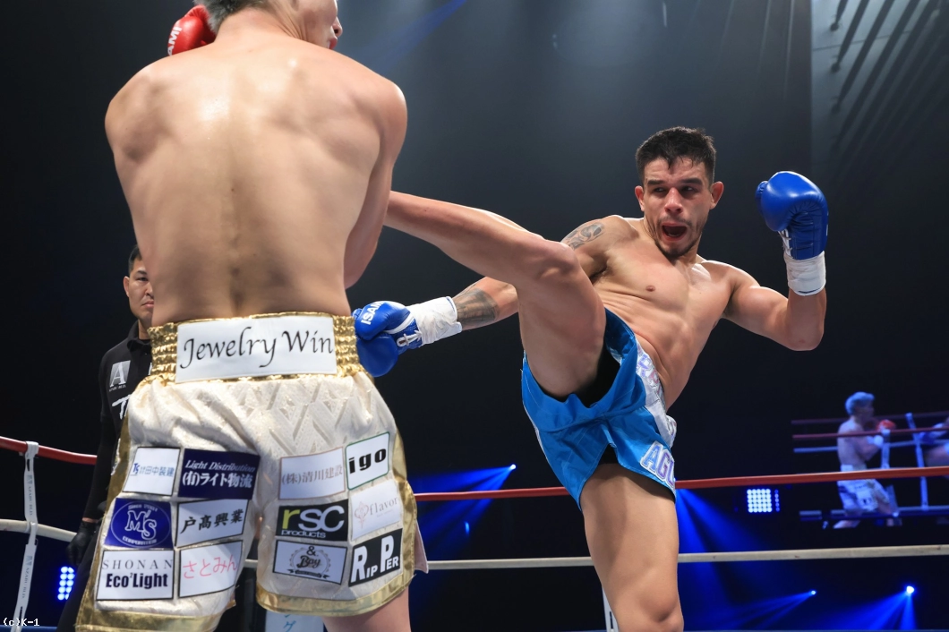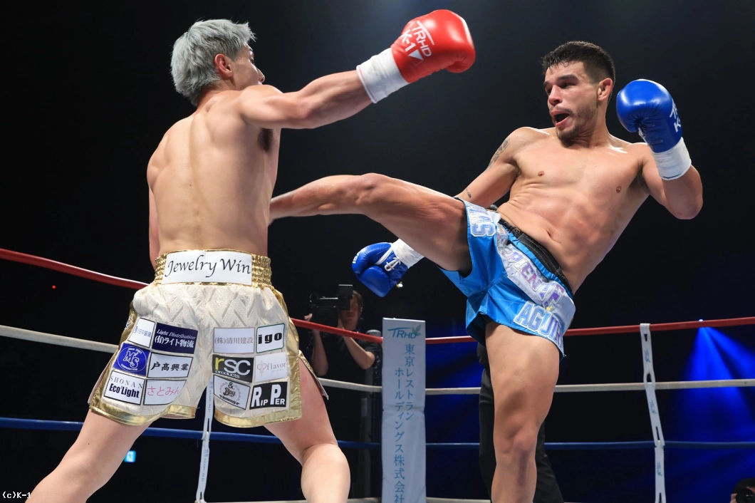アギーレはKO率が高い、WGP Kickboxingスーパーライト級(-64.5kg)王者。アルゼンチン出身の南米のWGPチャンピオンは、23年1月のGLORY RIVALS 5にてメキシコのエイブラハム・ヴィダレスと激闘を繰り広げた。左右のフックとローキックの破壊力は抜群で、打ち合いに強いところが持ち味のひとつ。24年9月の第7代K-1 WORLD GPスーパー・ライト級王座決定トーナメントでは一回戦でメン・ガオフォンを撃破も準決勝で稲垣柊に判定負け。24年11月はKrush名古屋大会で大岩龍矢から判定勝ちを収めた。