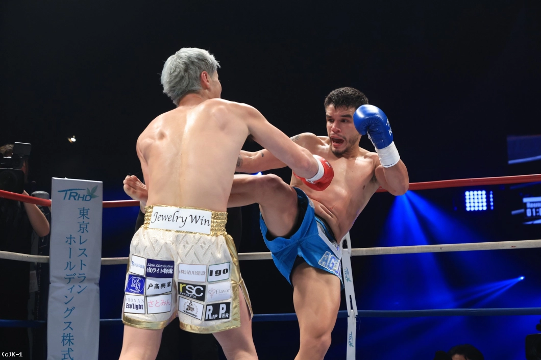 1R、サウスポーの構えの里見は、ワンツーで先制。さらに左ハイキックを放つ。里見は鋭いジャブ、三日月蹴りを突き刺す。アギーレは前へ出てパンチからハイキック。里見はローキック、アギーレは左フックを合わせる。アギーレは飛びヒザ蹴りから右のパンチ。里見はジャブで組み立てる。アギーレは右のパンチが怖い。大きな差がなくラウンド終了。