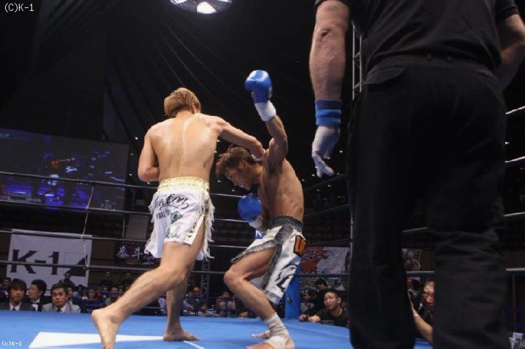 2R、鈴木が蹴りを中心にテンポ良く攻めていくが、戸邊が左ハイキックをズバリ決めてダウンを奪う。このまま戸邊が左ミドルから前に出ていくが、鈴木も右ストレートから左フックを当てて打ち合う。