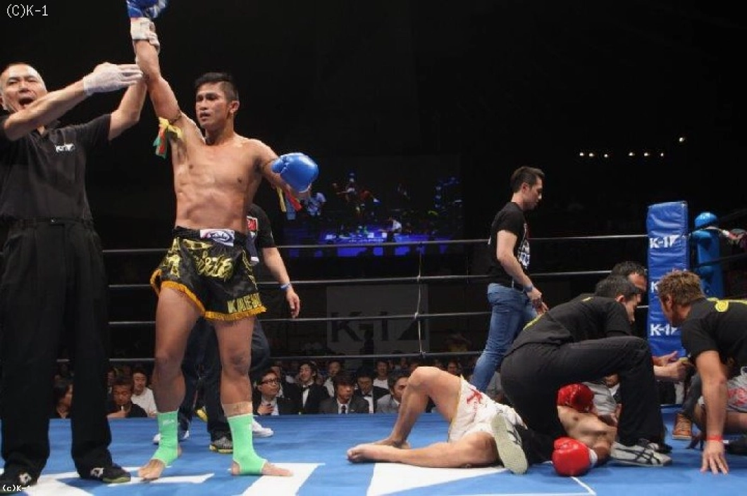 2R、ゲーオのローに久保がワンツー。久保がじりじりとプレッシャーをかけて左右のフックを打ち込む。蹴りの距離を潰してパンチで勝負する久保だったが、ゲーオもそこに左ストレートから右フック。これが久保の顔面をモロに打ち抜いて、久保がマットの大の字。久保はそのまま立ち上がることが出来ず、ゲーオが豪快なKO勝利で決勝に駒を進めた。