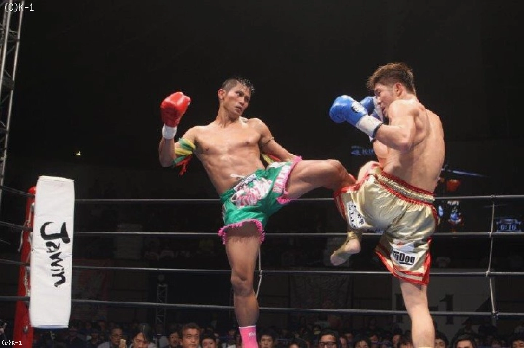 1R、サウスポーのゲーオが左ストレートと左ハイ、ローと左ストレートを打ち込む。左右田もそれをブロックして前に出ていくが、ゲーオが左ストレートと左ハイを当てる。さらにゲーオは左のヒザ蹴りと左ボディストレートを打つ。