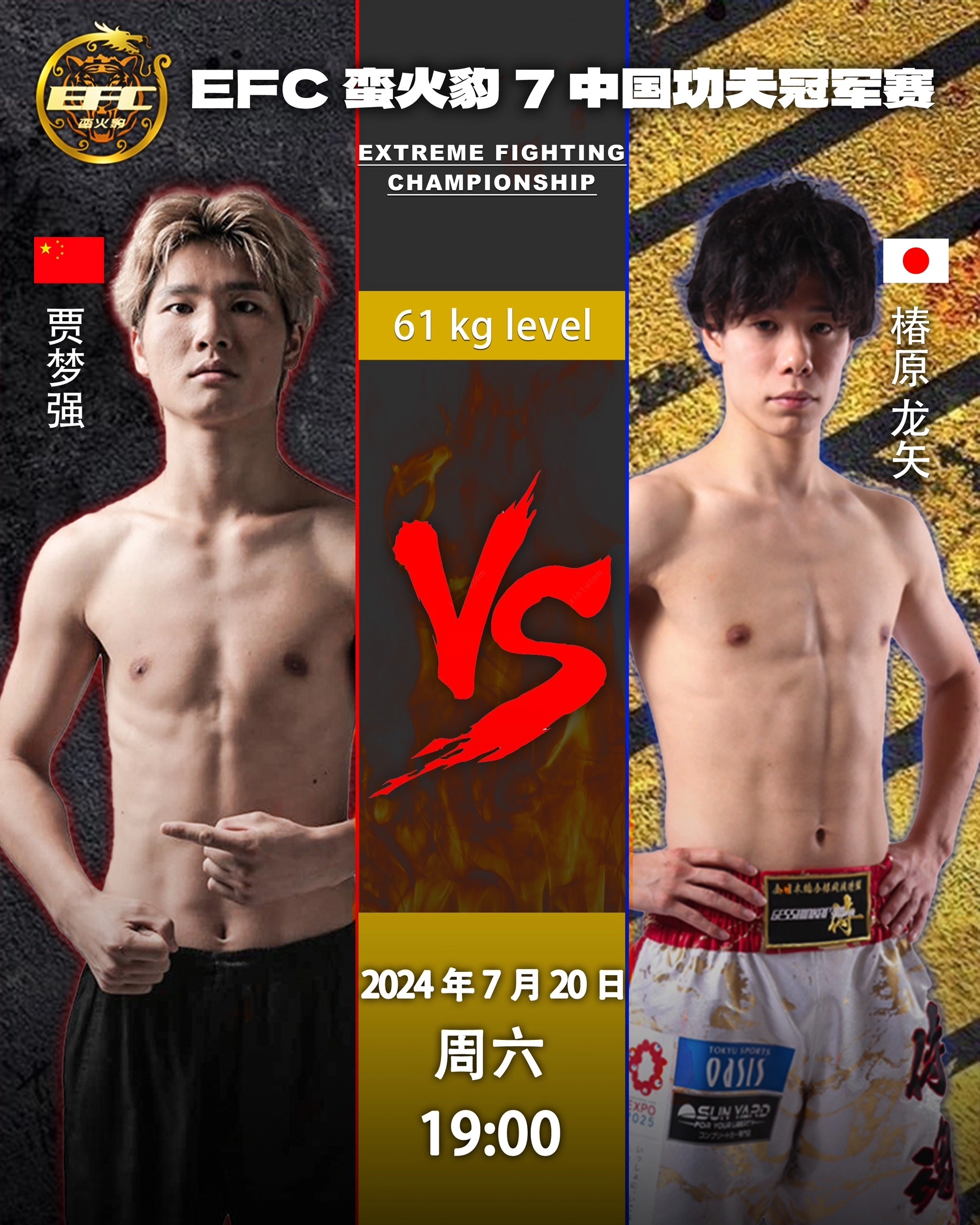 「EFC」は今年5月から中国でスタートした新イベントで、専用スタジアムとして蛮火豹中国カンフーセンターを保有。5月~6月の2か月間で6大会を開催、今回は第7弾として初の中国vs日本・5vs5対抗戦を行います。今回が初の中国遠征試合となる椿原龍矢は、EFC -63㎏級王者のジャー・モンチャンと-61.0kg契約で対戦。2018年7月以来6年ぶりの中国参戦となる佐野天馬は、武林風CKL 2024 -60kgトーナメント第三位のジャン・ハイヤンと-63.0kg契約で対戦が決まりました。