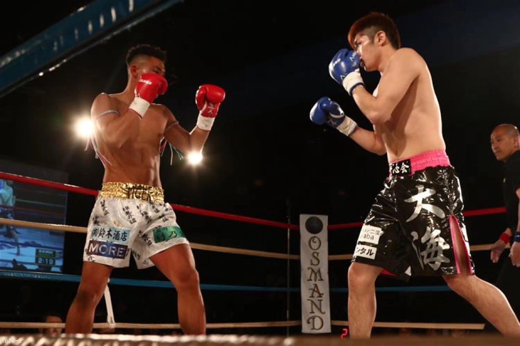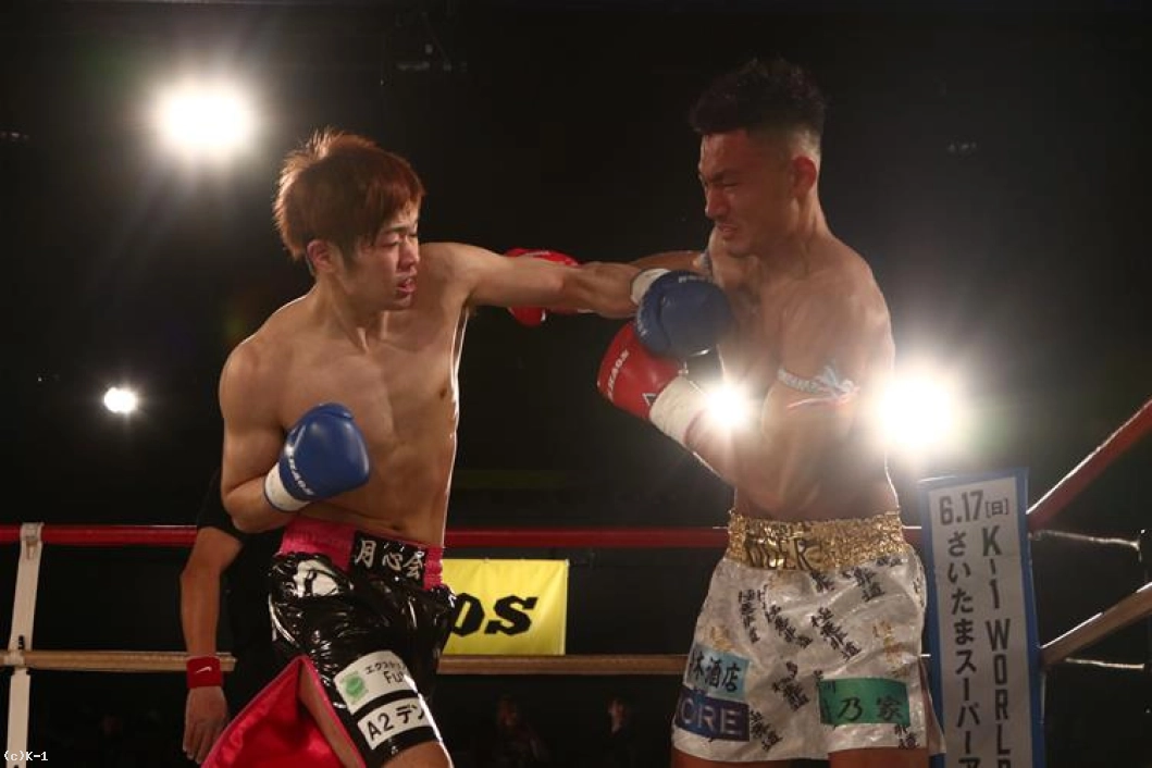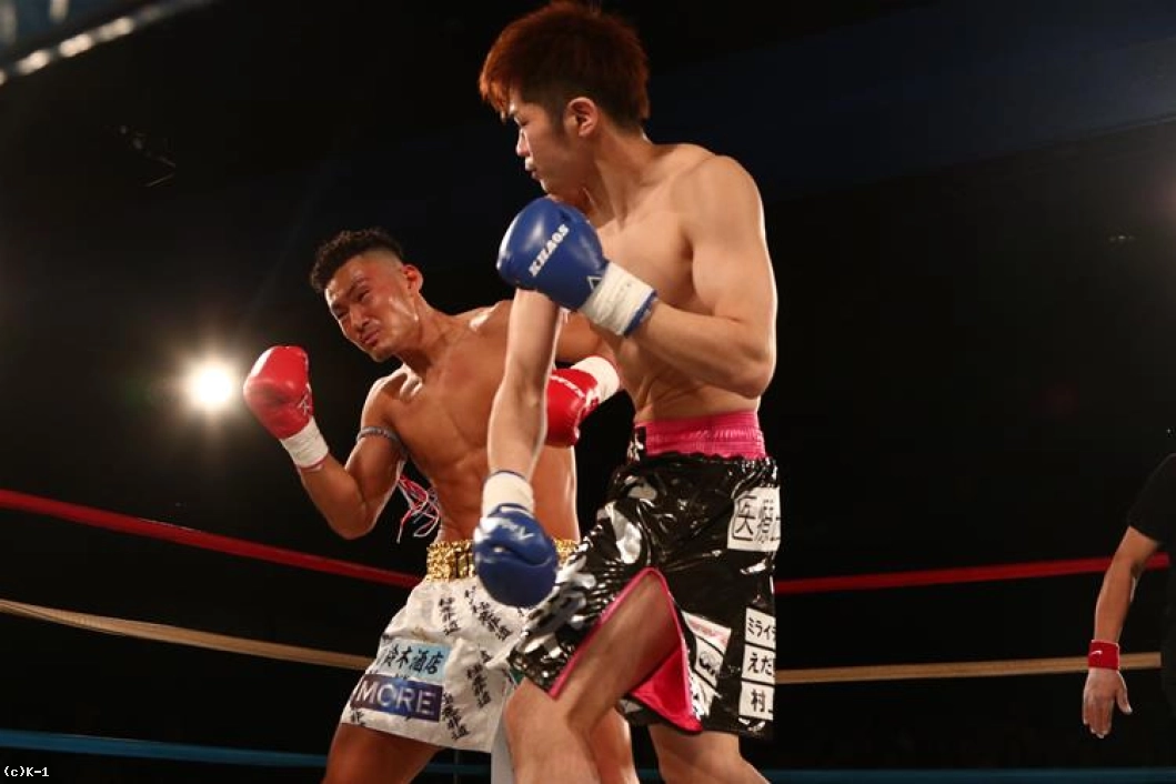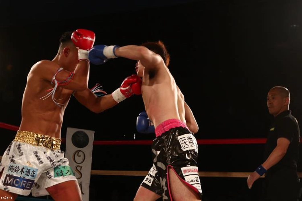 1R、オーソドックスの神保にサウスポーの和島。左ミドルを快調に当てていく和島に対し、神保は伸びのある右ストレート、力のこもった左フックを放つ。和島は左ミドル、左インローを当てながら神保を追い詰める。右ストレートを振るっていくが、和島は距離を的確に取っており当てさせない。しかし和島の左ストレートの直後に神保は右ショートストレートをヒット。和島は一瞬腰砕けになり神保が追うが、ここは和島が追撃させず、さばいて終える。