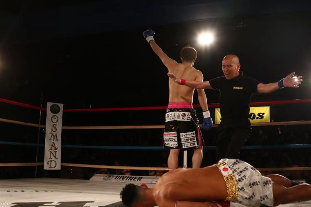 2R、和島は右ジャブから左ミドル・左ロー。しかし神保も右ストレート、左フックと依然パンチに力を込めていく。蹴りの和島vsパンチの神保の図式であったが、和島が左ストレートを伸ばして神保がダウン。立ち上がった神保は右ストレートを当てて反撃する。和島は左ローを打ち込み、神保の右ストレートにさらされながらも左ストレートでフラつかせ、さらに左ストレートをもう1発打ち込み、神保を前のめりに倒してKOした。