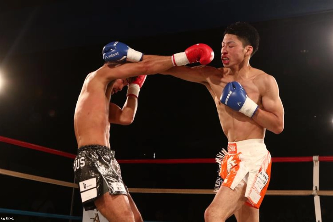 「最後に倒してなかったら負けとったから、反省せな(苦笑)。まだまだ自分は弱いから、こんなところで立ち止まっている場合じゃないです。まぁ最終的に倒せてよかったかなと思います。(対戦相手の印象は?)強かったすね。しっかり映像を見て、対策したつもりなんですけど、見るのとやるのは違うから。本当に勝ててよかったです。(今後の目標は?)もっと俺の存在を、ライト級に俺がおるんやぞってところをしっかりみんなに見せたいです。試合内容はあかんかったけど、とにかく今は勝てたからよかったなと言いたいです。辛い時でも追い込んで、けつ叩いてやってきたから勝てたと思うし、今だけは自分を褒めたいですね。でもこれにいつまでもひたっとたらダメなんで……また頑張ります」