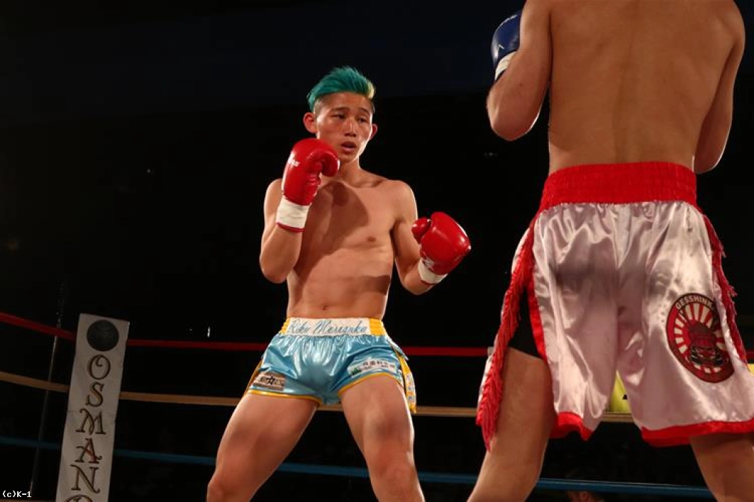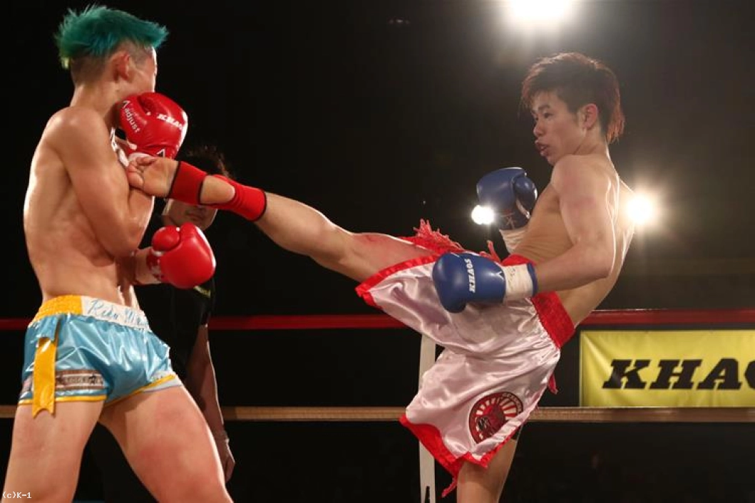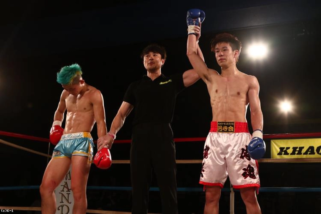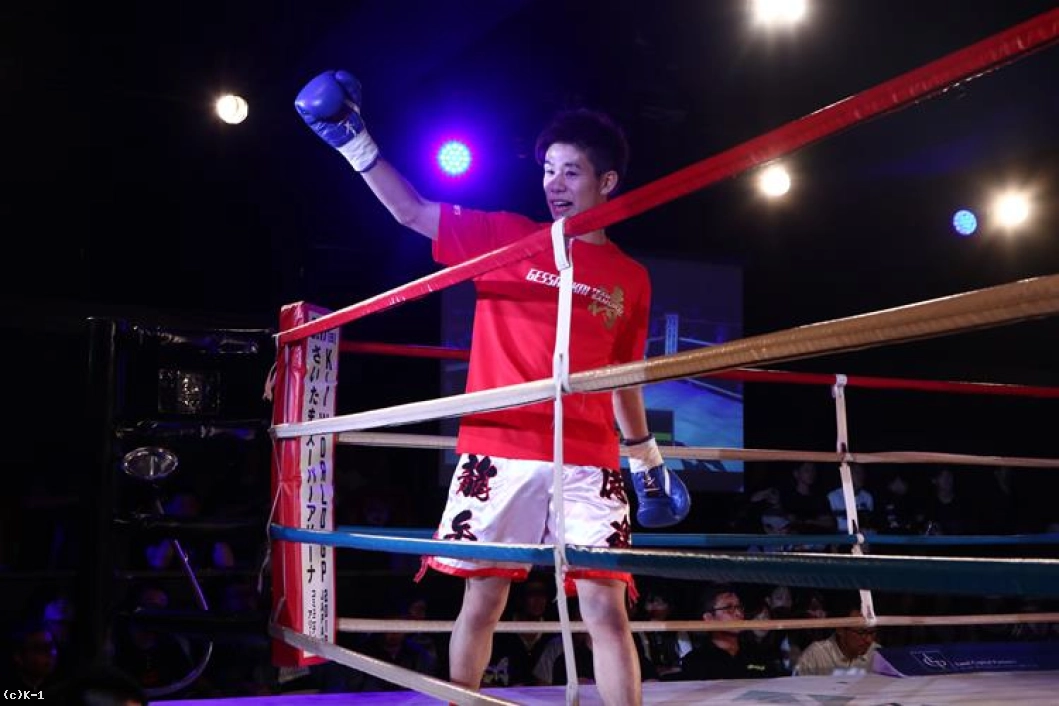 「前回は蹴りがめちゃくちゃ少ない気がして、今回は意識して蹴りを出しました。で、蹴りは出せたんですけどスタミナがなくなるのが早くて、次はスタミナを強化しないといけないと思いました。(対戦相手の印象は?)蹴りが多いのは分かっとたんですけど、前日会見で『パンチをやってきた』と言っとったから…『うそやん!作戦考えとったのに!』と思いました(苦笑)。確かに森坂選手はパンチが上手いなと思いましたけど、上手くそこをカバーして戦えてよかったです。(今後の目標は?)今回パンチ力をつけて倒そうと思ったんですけど倒しきれなくて。でもパンチを打った感じは変わっているし、自分は一試合ごとに進歩していると思います。次はKO出来るようになると思うし、その次はさらにKO出来るようになると思うんで期待しとってください!」