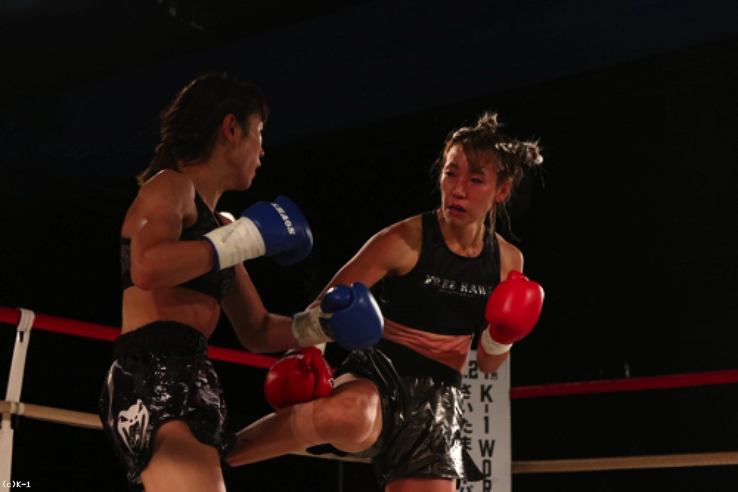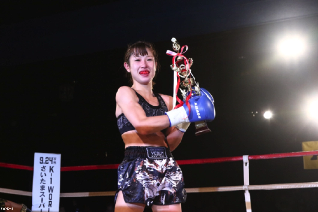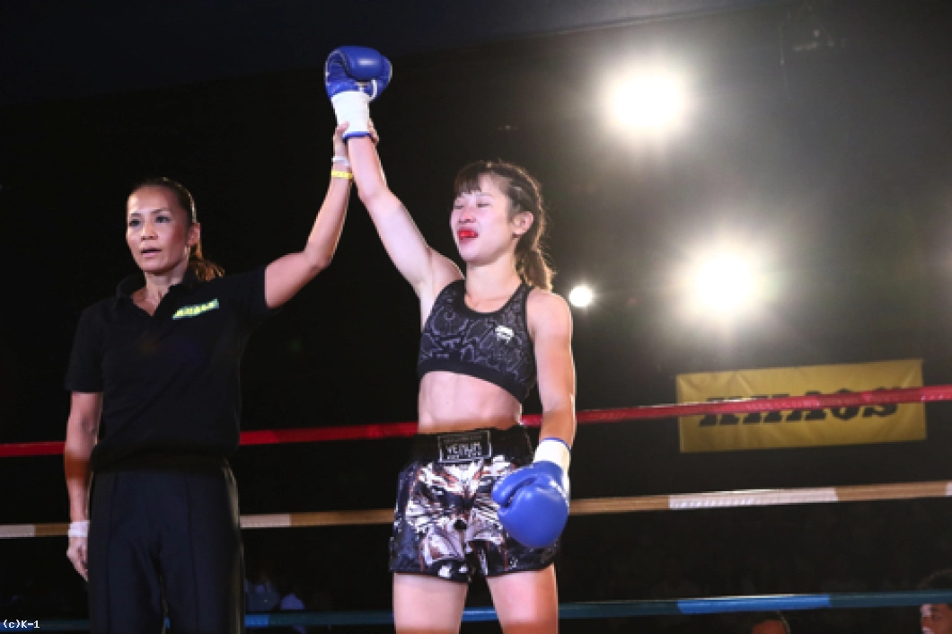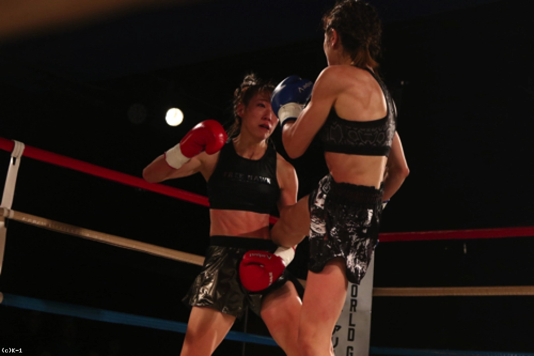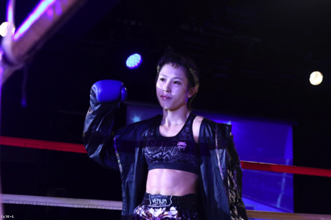 「(試合を終えた感想は?)今はすごくホッとしています。記者会見でも絶対にKOすると言っていて、負けることはないなと思っていて。3Rまで手こずっちゃいましたけど、最後は倒せてよかったです。(対戦相手の印象は?)K-1アマチュアでもやったことがあって、その時はパンチで打ち合って、私がダウンを取って勝った形でした。今回も打ち合いで来ると思ったけど、前蹴りを二~三発初もらって失速しちゃった部分があって、そこは反省点ですね。
