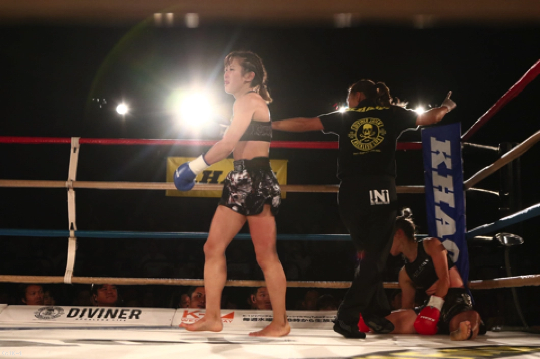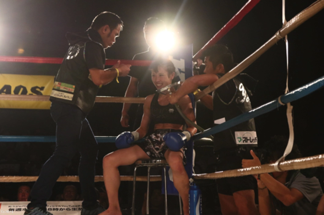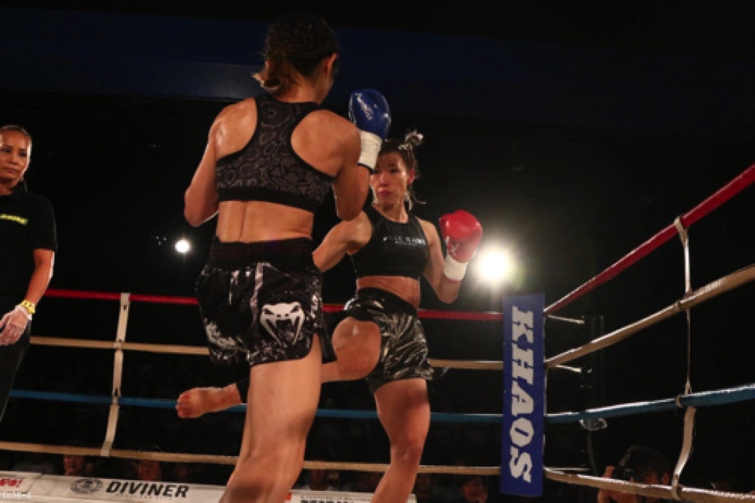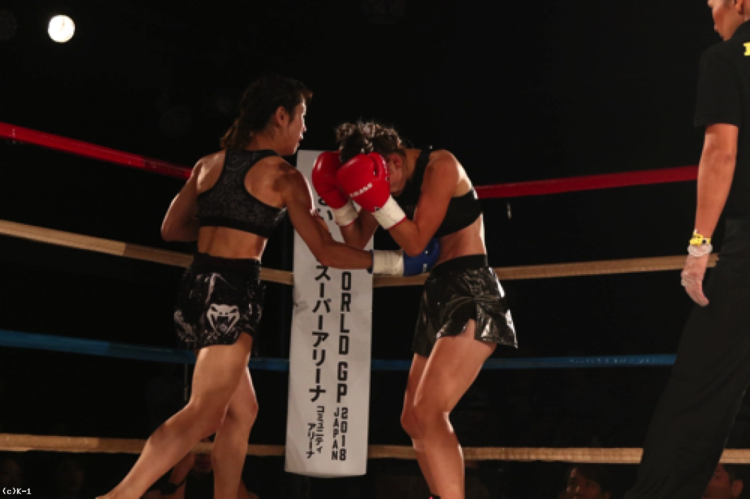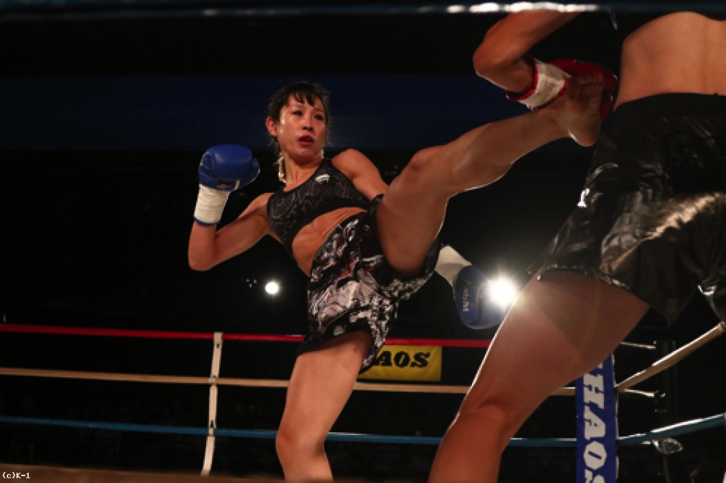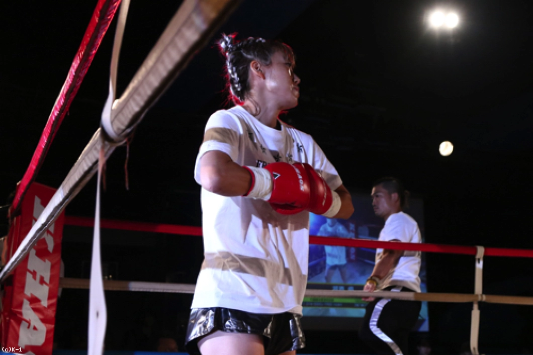 「(試合を終えた感想は?)今はすごくホッとしています。記者会見でも絶対にKOすると言っていて、負けることはないなと思っていて。3Rまで手こずっちゃいましたけど、最後は倒せてよかったです。(対戦相手の印象は?)K-1アマチュアでもやったことがあって、その時はパンチで打ち合って、私がダウンを取って勝った形でした。今回も打ち合いで来ると思ったけど、前蹴りを二~三発初もらって失速しちゃった部分があって、そこは反省点ですね。
