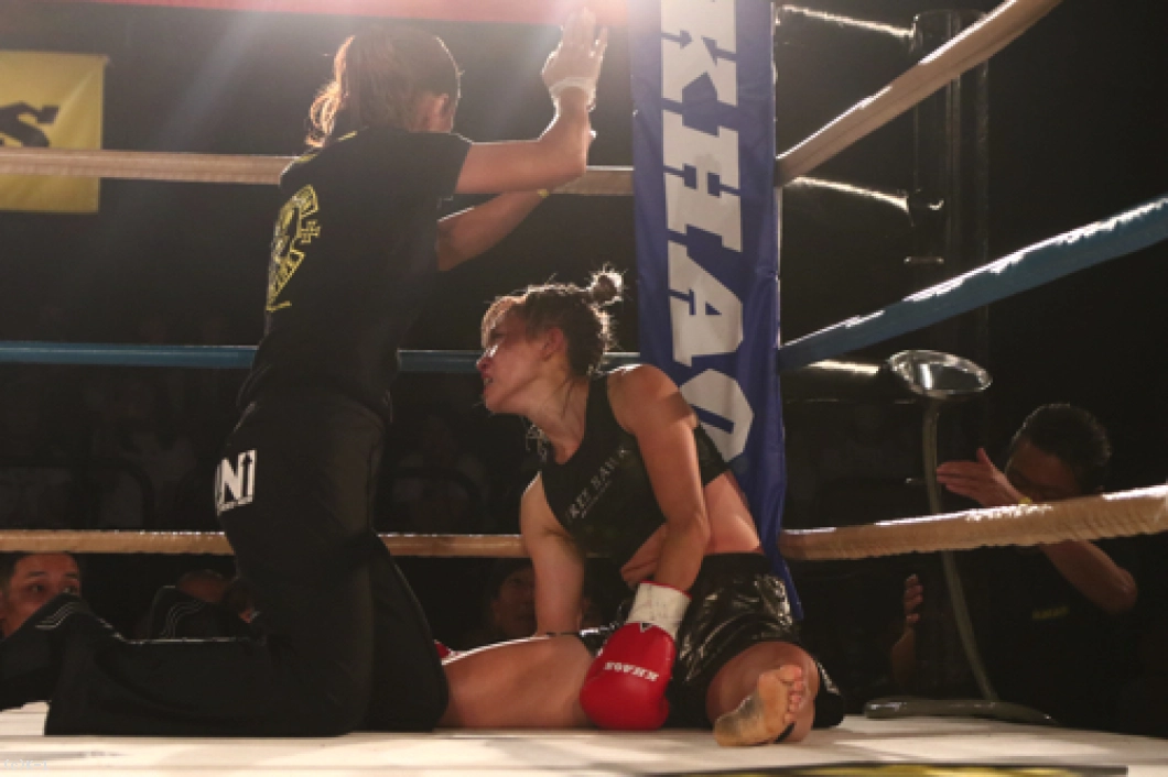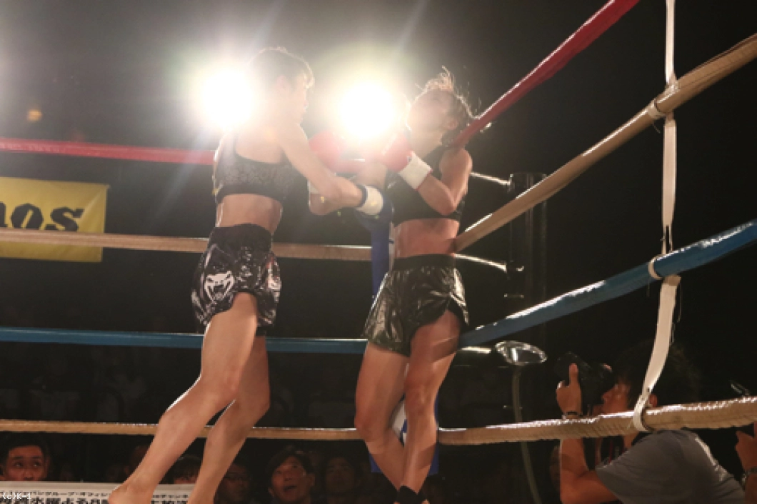 1R、これがデビュー戦となる高梨は、自分から積極的にパンチを振るって先に仕掛ける。福原は高梨のガードが下がったところに左フックを当てる。しかし高梨は右ストレート、左フック、右ボディフックと攻め手を増やし、ガードを固める福原に対して右フックを上下に打ち分ける。