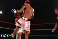 1R、両者はサウスポーに構え、龍華が前蹴りを中心に前へ出ていく。そして強烈なローを打ち込むと、そこからワンツー・右ボディフックを打ち込む。続いて龍華が左ローを打ち込むとアンジはたまらずダウン。ダメージの深いアンジは立ち上がることができず、龍華が幸先のよい秒殺KOを決めた。