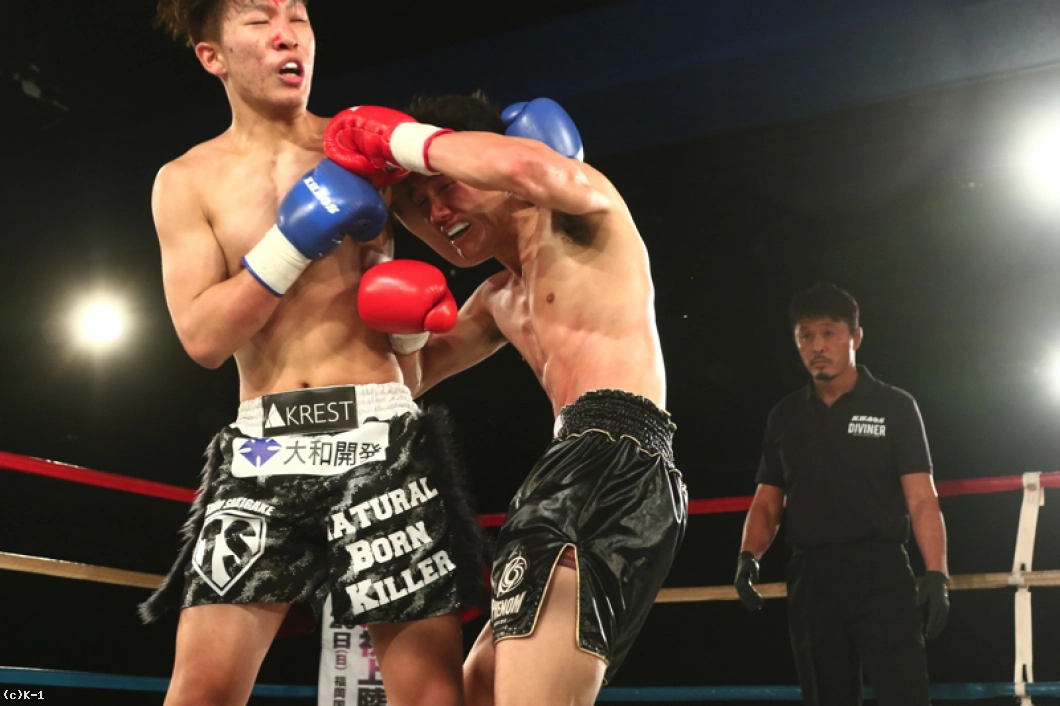 「試合前からKOすると言っていて狙いすぎたかなと思います。相手が結構自分を対策しているなと思って、自分の考え不足でした。(対戦相手の印象は?)タフな相手でした。1Rで倒れるかなと思ったんですけど、3Rまでいってしまって。(練習してきたことは出せた?)セコンドの声を聞いたり、アッパーも当てられたり、自分が考えているものが出せたと思います。(今後の目標は?)本当はKOしてマイクで『強い人とどんどん当ててくれ』と言おうと思ったんですけど…次は当てられた相手をKOできるように頑張ります」