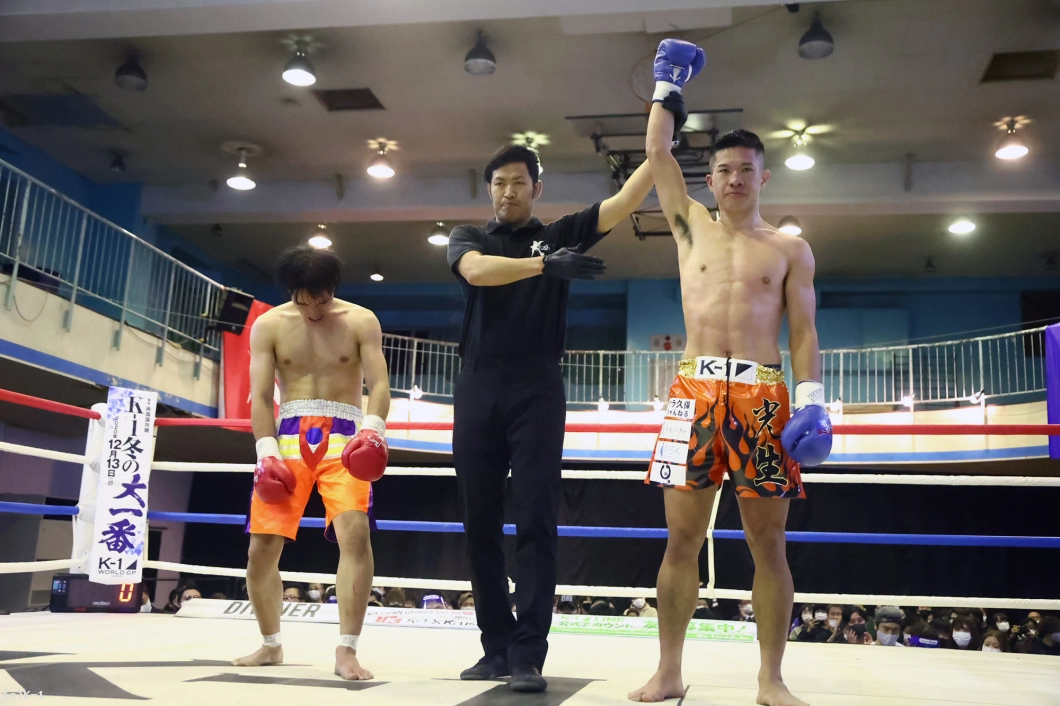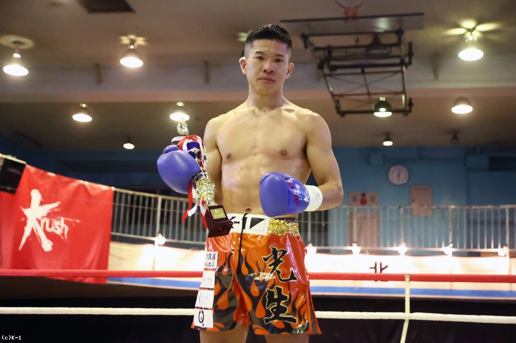「今回デビュー戦だったんで緊張して固くあんるかなと思ったんですけど、リラックスして周りの声も聞こえて、思ったより緊張しなかったです。(対戦相手は)試合前から頑丈だなと思ったんですけど、実際に頑丈で倒れてくれないなって感じでしたね。僕は格闘技を始めたのが遅くて2~3年前なんですけど、3年以内にKrushチャンピオンになります」