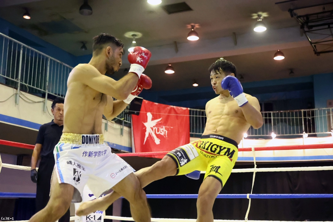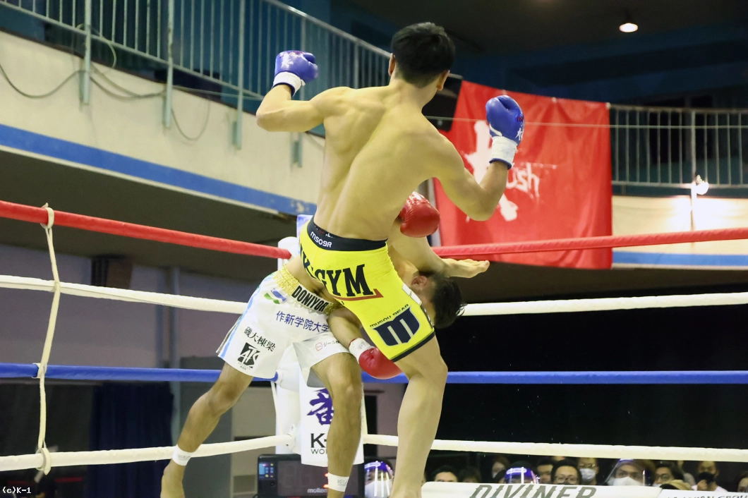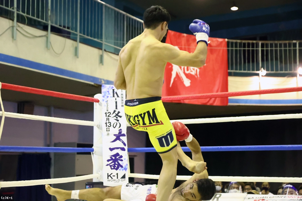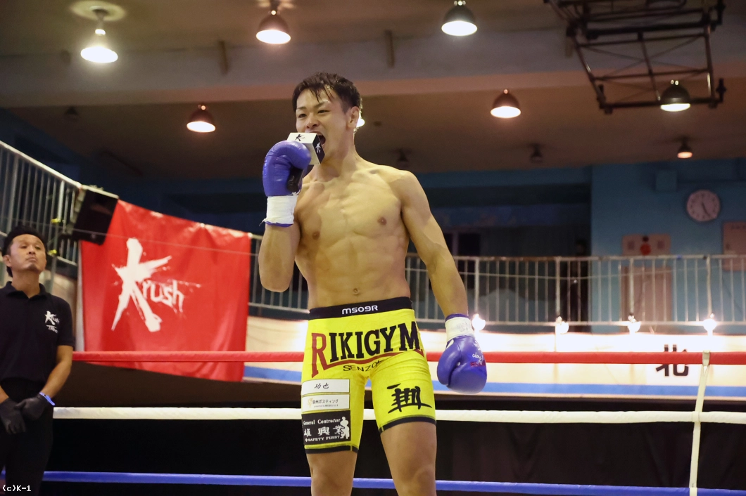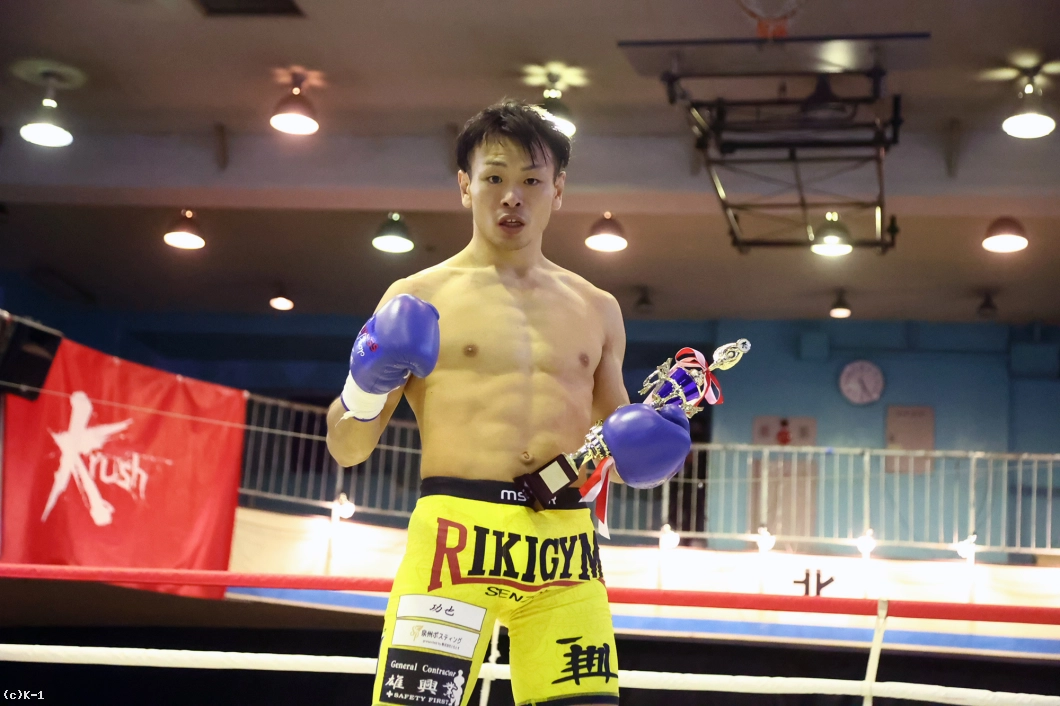 「もともと僕がK-1アマチュアで優勝した時に一個上の階級で優勝していた相手なんですね。お互いデビュー戦同士で絶対に負けられへんと思って戦いました。今回相手のことを分析してパンチが重いのは分かっていました。で、カウンターを合わせる練習をして、ダウンもとれたので練習したことが出せた試合だと思います。絶対Krushのベルトを獲って、名前を残していきたいです。これからもっと強い選手とやらせてもらって強さを見せていきたいです」