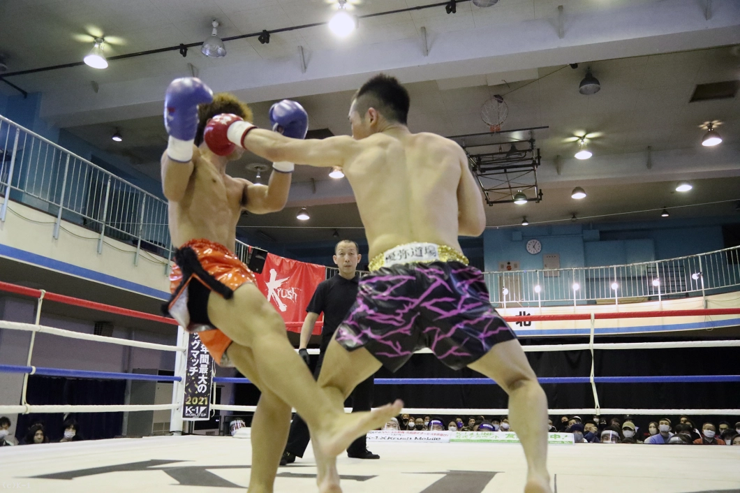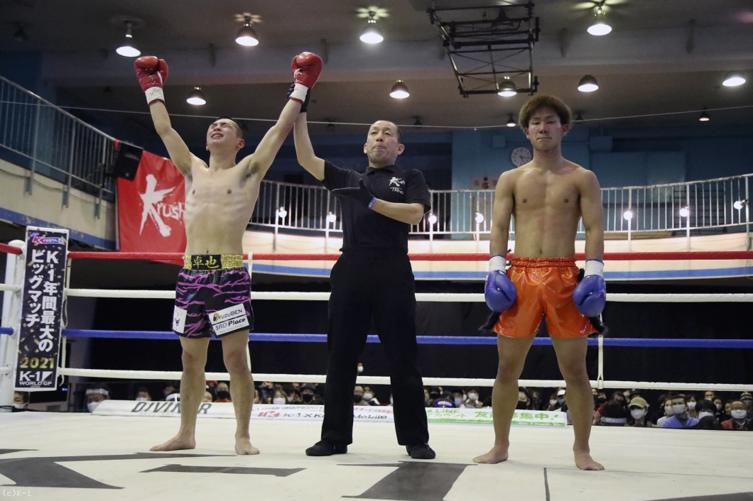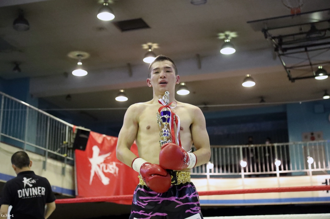 「倒し倒されの試合だったので記憶があいまいな部分があるのですが、勝てて良かったです。(対戦相手の印象は?)キレがすごかったです。特に左フック。あれで倒されたので、途中から(左フックに)気を付けないといけないと思って試合をしました。(今後の目標は?)僕は25歳で格闘技を始めて、4年でプロになりました。だからプロになりたいと思っている人はどんどん挑戦した方がいいと思います。僕は人生挑戦だと思っているので、これからも挑戦していきたいと思います」