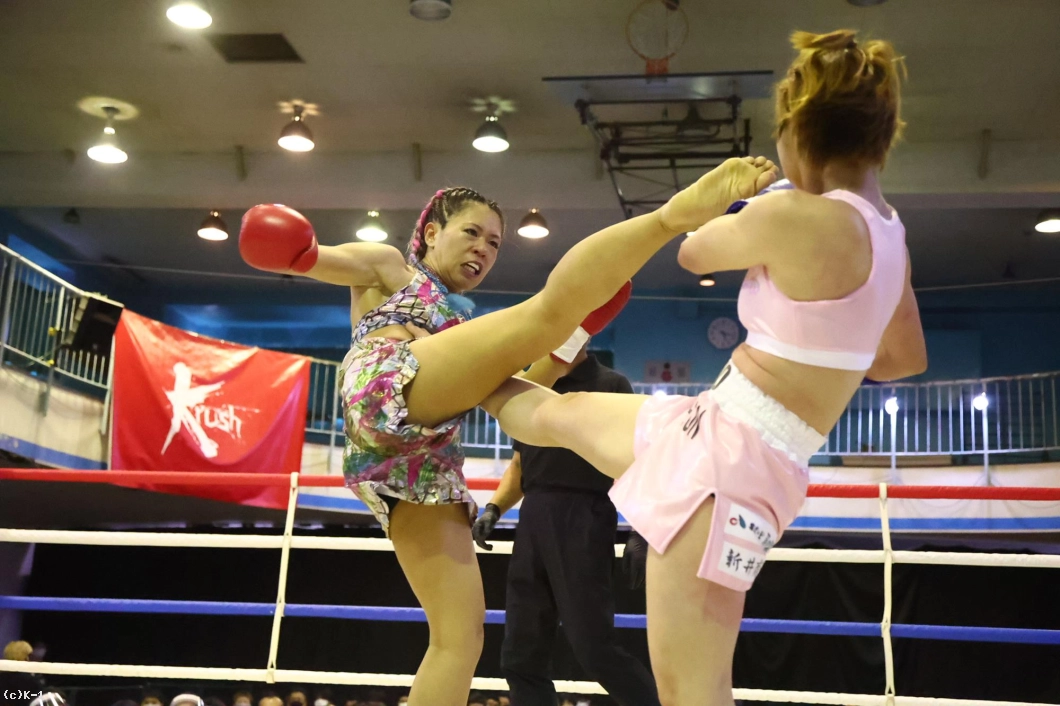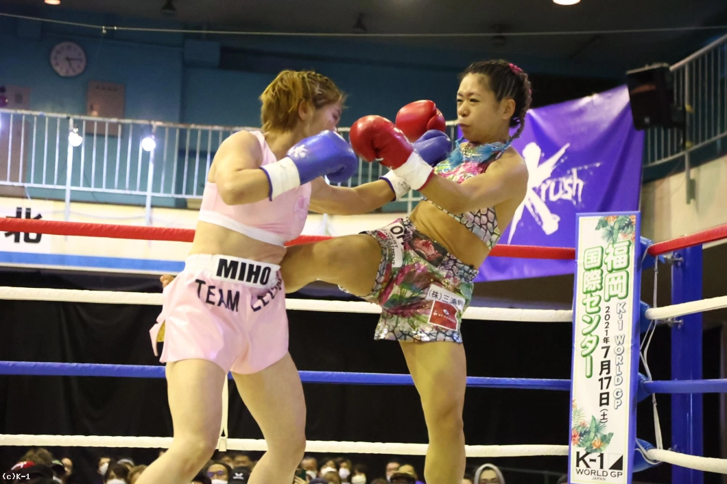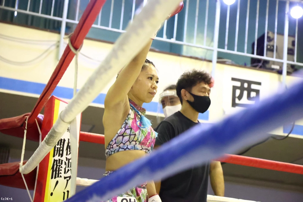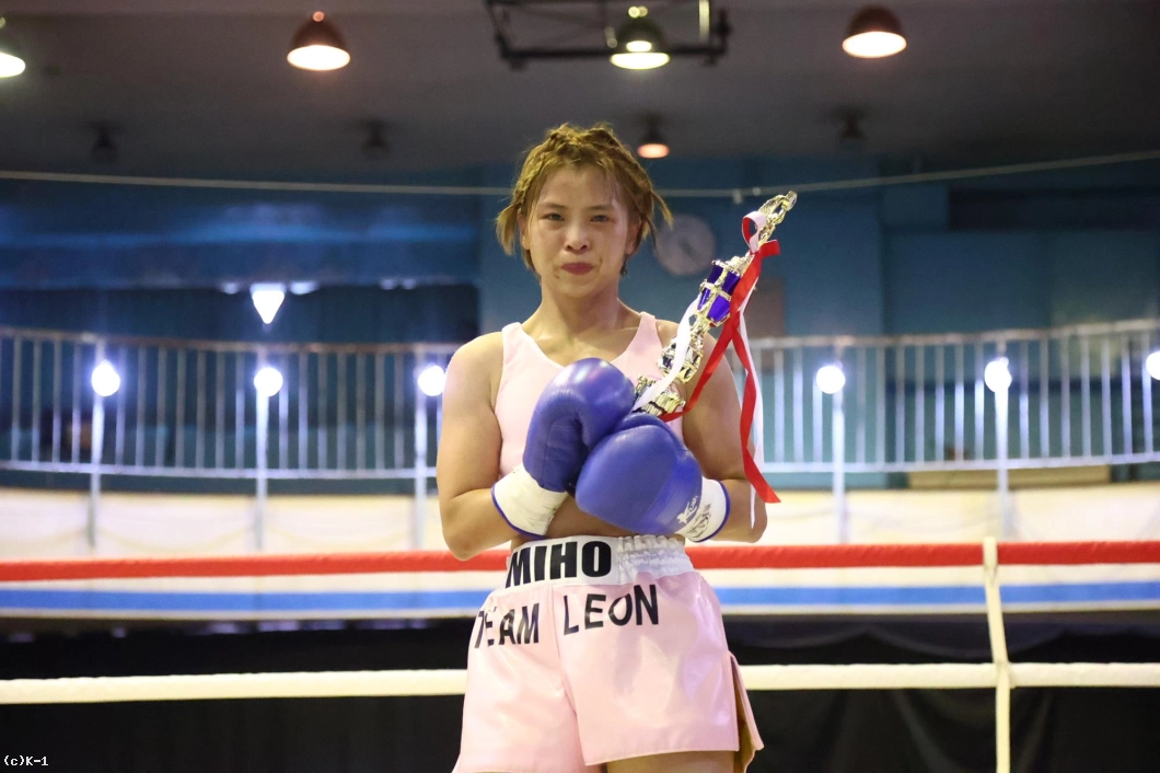 「AIKO選手は慎重さがない分、やりすかったんですけど、パワーがあるなと思いました。自分からいかないと判定で負けると思って、ガツガツいって初勝利できてよかったです。(対戦相手は)想像通りにパワーがあるなって感じでした。(今後の目標は?)前に出るのはいいんですけど、雑にならないようにKOできるパンチや蹴りを練習して、上を目指していきたいと思います」
