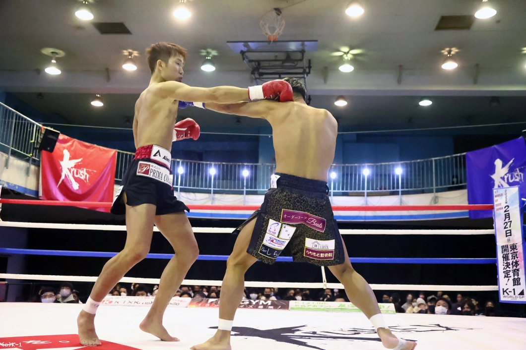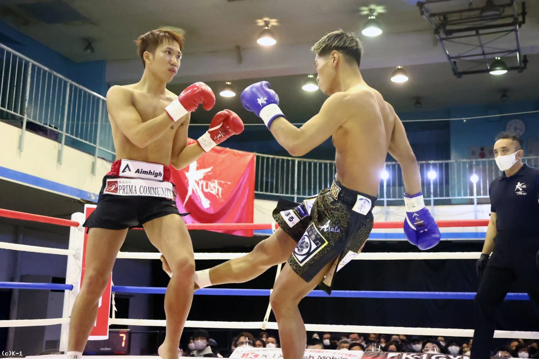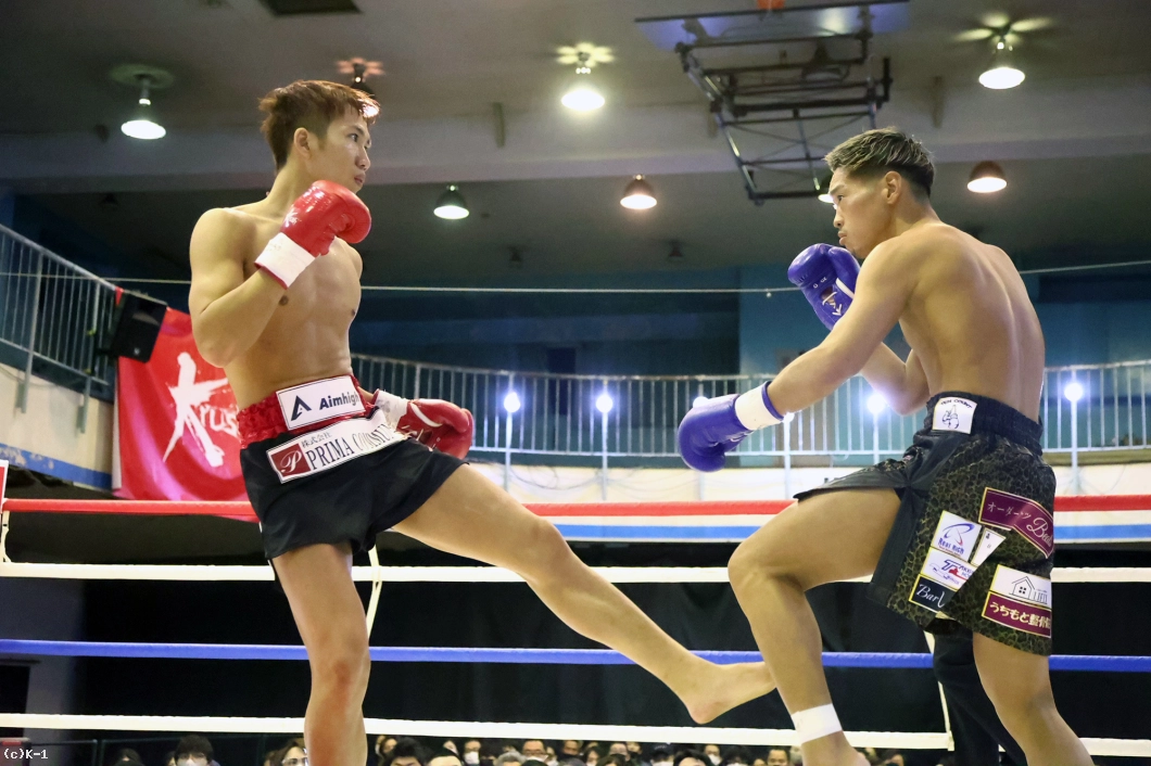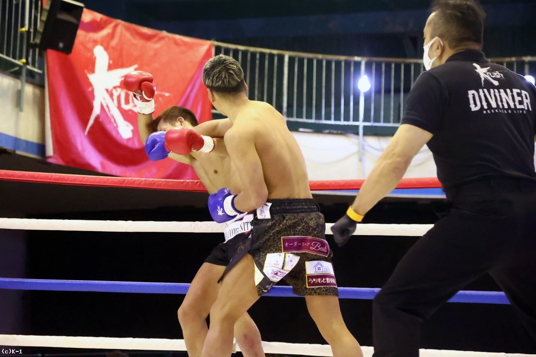 1R、カーフキック(膝から下・ふくらはぎを蹴るローキック)を蹴り合う両者。新太は距離を詰めて右フックを打ち込む。安田は新太のローにワンツーを狙うが、新太が右ストレートから返しの左フックでダウンを奪う。再開後、新太が右のパンチを連打してKO勝利を収めた。試合後、新太は「今までやってきた相手みんなキャラが濃すぎるでしょ!次やりたいのは堀井翼。よろしく!」と堀井戦をぶちあげた。