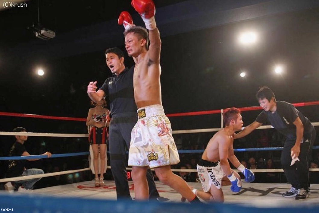 2R、SATOIが左フックから右ストレート。島野のパンチをしっかりとガードしてローを蹴り、下がる島野に右ストレートを当ててダウンを奪う。再開後、島野もパンチで前に出るが、SATOIはそれをノーガードで空振りさせて右ストレート、奥足ローを当てる。