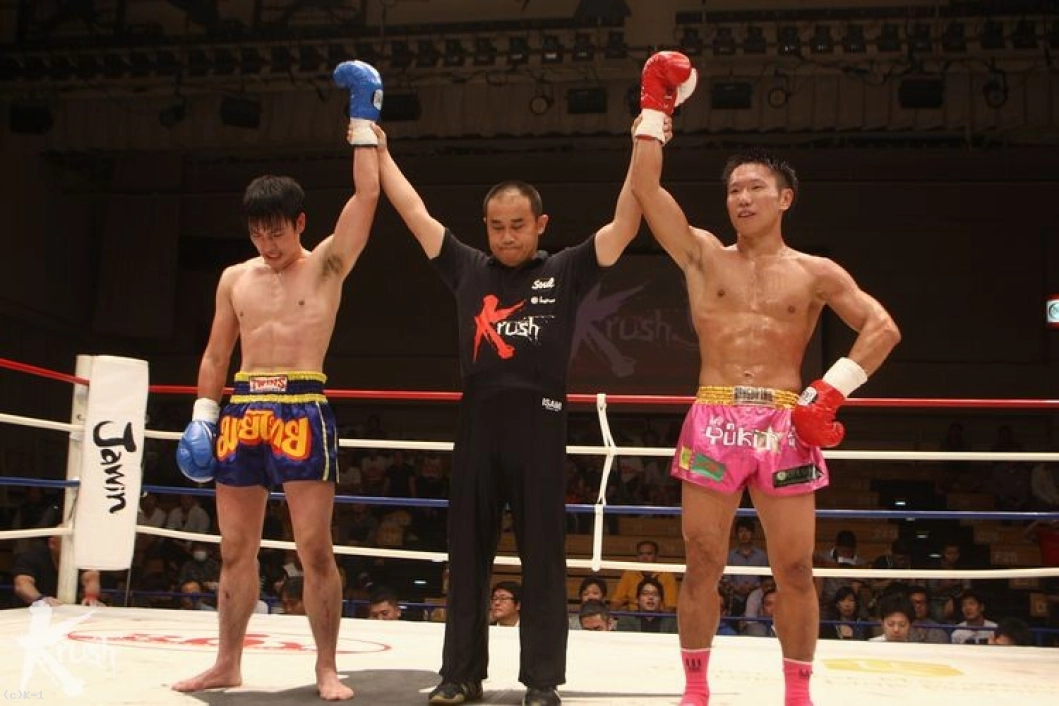 3R、ユウキが距離を取りながら左ミドル。野口も右ミドルを蹴って、右アッパーからパンチをまとめる。ユウキは左ストレートを返して前蹴りと左ミドル。野口は右フック・右ミドルで前に出続ける。最後は激しい打ち合いとなり、ユウキの左ストレートと野口の左フックがヒットする。判定はジャッジ1名がユウキを支持したものの、ドローに終わった。