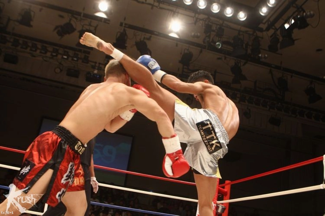 1R、一気に距離を詰める翔也が顔面とボディにフックを集める。伊藤は距離を取って前蹴りと左ミドル、ヒザ蹴りのカウンターを狙う。翔也は左ボディから顔面への左フック、伊藤は飛びヒザ蹴りを狙う。翔也は左アッパー・左フックから右ハイキック、パンチをまとめて右ローを蹴る。伊藤もガードを固めてヒザ蹴りを返す。