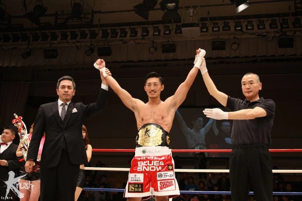「(試合を振り返って?)自分の中でやるべきことをしっかりやって、対策もつめて、試合に挑めたんじゃないかと思います。ぶっちゃけて言うと最初は距離感を見て、そこでゴーかけれればゴーかけて、一気にいっちゃおうと思ってました、合格点ですかね。(WILD RUSHの盟友というか、NOMAN選手にやりづらさは?)プロとしてそんなこと言ってるようじゃダメですよね。まあ、NOMAN選手は人としても選手としても尊敬してる人間なんで。そういう相手からベルトを獲れたのはうれしく思いますし。歴代の65kgのチャンピオンに恥じないような戦い方をしないといけないと思いますし、また新しい道を僕が作らないといけないと思いますし。ひとつ、忘れ物もあるんでね。K-1という舞台では。そこでいかにインパクトを残して。あんまり、自分はK-1の方では自分は取りあげてもらってないですけど、そこは結果出していかないといけないので。