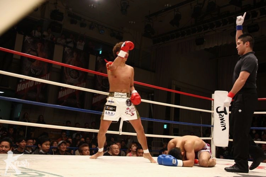 「(初KO勝利でしたが?)いつもの感じで勝てたという感覚なので、まだKOという実感がないですね(苦笑)。(仕切り直しの試合として、この勝利は大きい?)ああ、だいぶ大きいと思います。ベルトにもからんでいきたいなと思います。(58kg以下級の手応えは?)そうですね、自分の階級なのかなって思います。(来年の目標は?)来年は必ずKrushのベルトを獲ります」