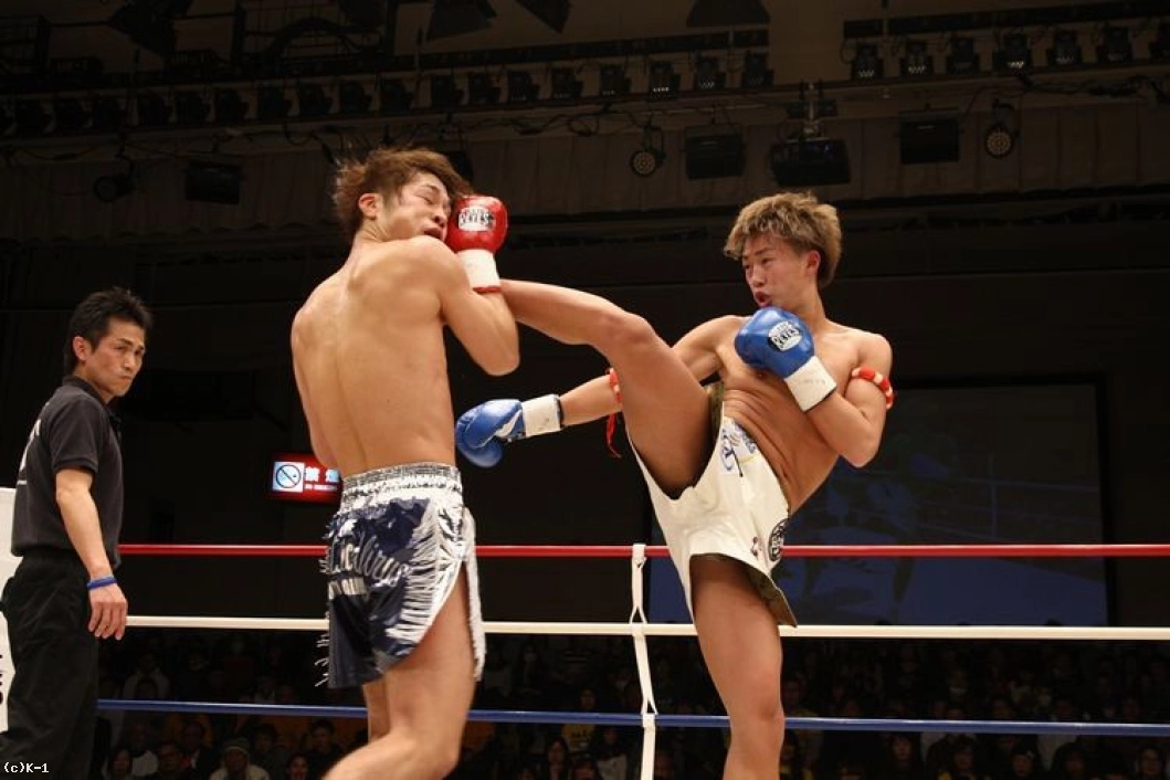 1R、ローを蹴り合う両者。戸邊はじりじりと前に出て左ボディ、右ストレートを叩き込む。しかし佐野がカウンターの右ストレートを当ててダウンを奪う。再開後、パンチで前に出ていく戸邊。佐野はそこに右ハイキックを合わせてダウンを追加する。KO負けのピンチを迎えた戸邊だが、佐野と果敢に打ち合う。