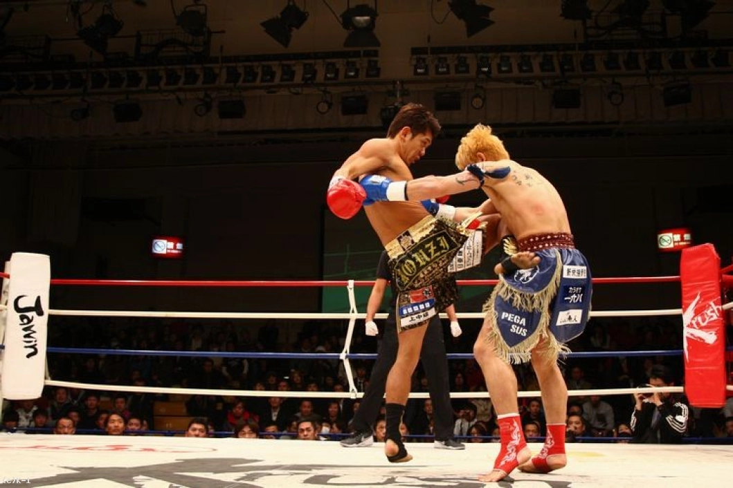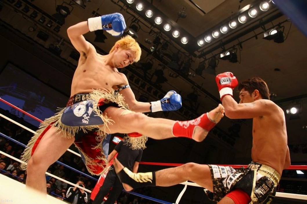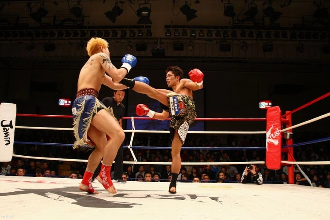 1R、じりじりとプレッシャーをかけてローを蹴る剣闘士。皇治は距離を取りながら右ロー・ミドルを蹴り、右ストレートを返す。剣闘士はいきなり飛び込んでヒザ蹴り。皇治もパンチをまとめて左ハイキックにつなげる。