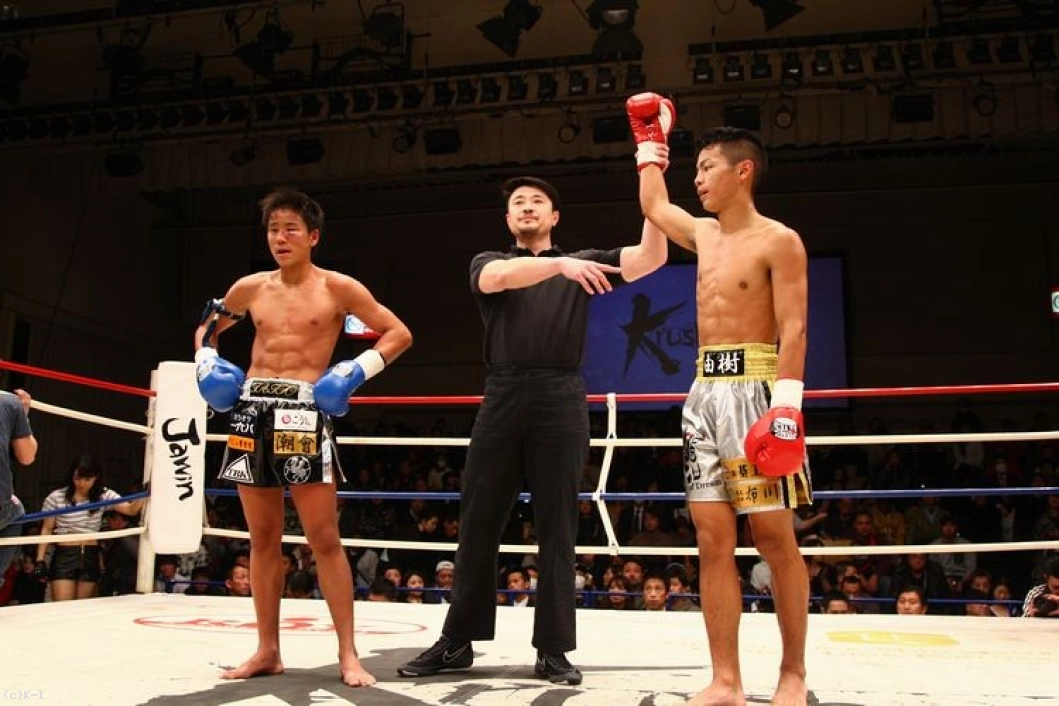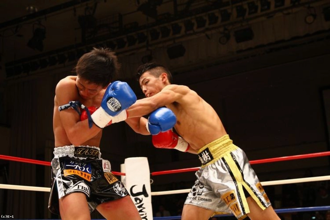 3R、前に出る武居が奥足ロー。これがローブローとなり、軍司にインターバルが与えられる。再開後、武居は左ミドルと右フック。軍司もパンチで前に出ていくが、武居が右フックを効かせてダウンを奪う。試合再開になると激しい打ち合いとなり、武居が左ストレートで軍司の動きを止める。ダウンを奪い合う熱戦は武居に軍配が上がった。