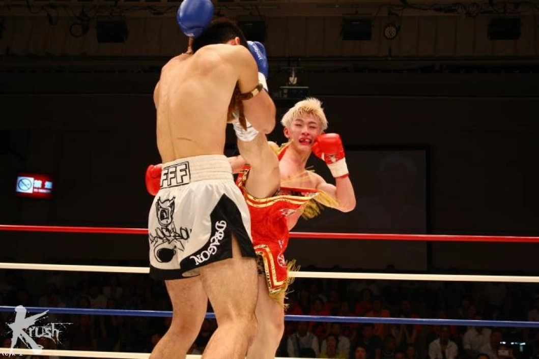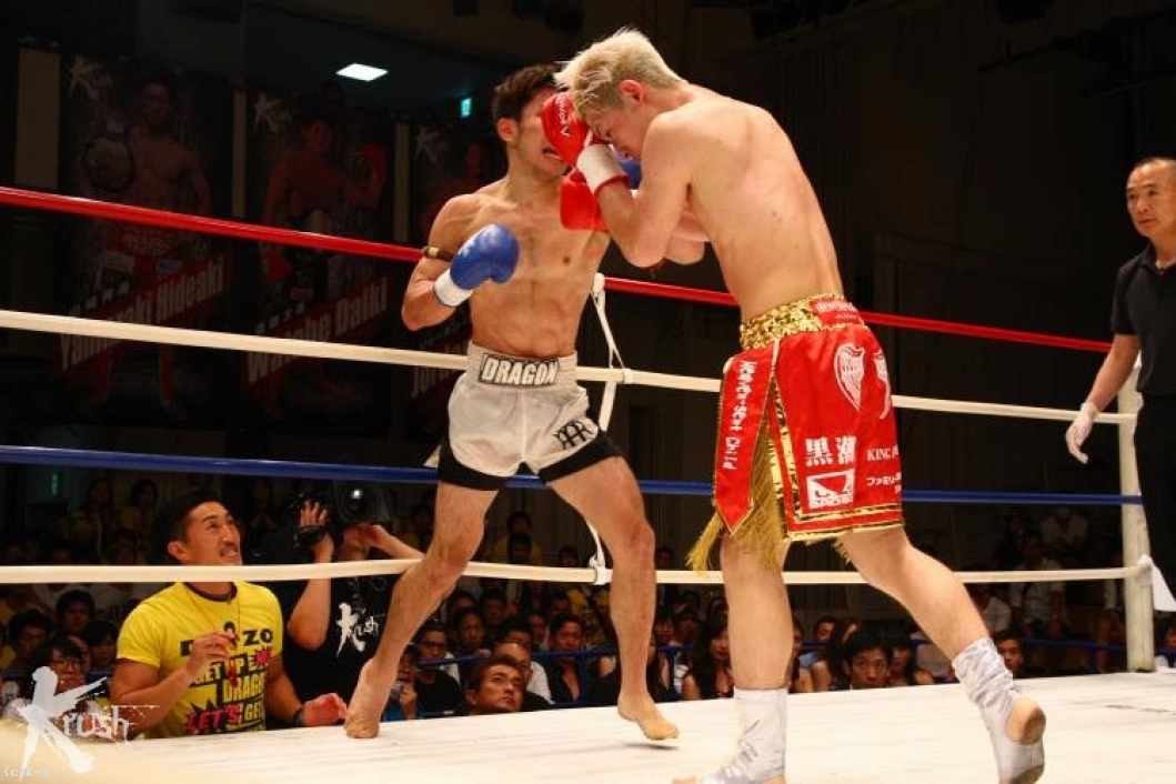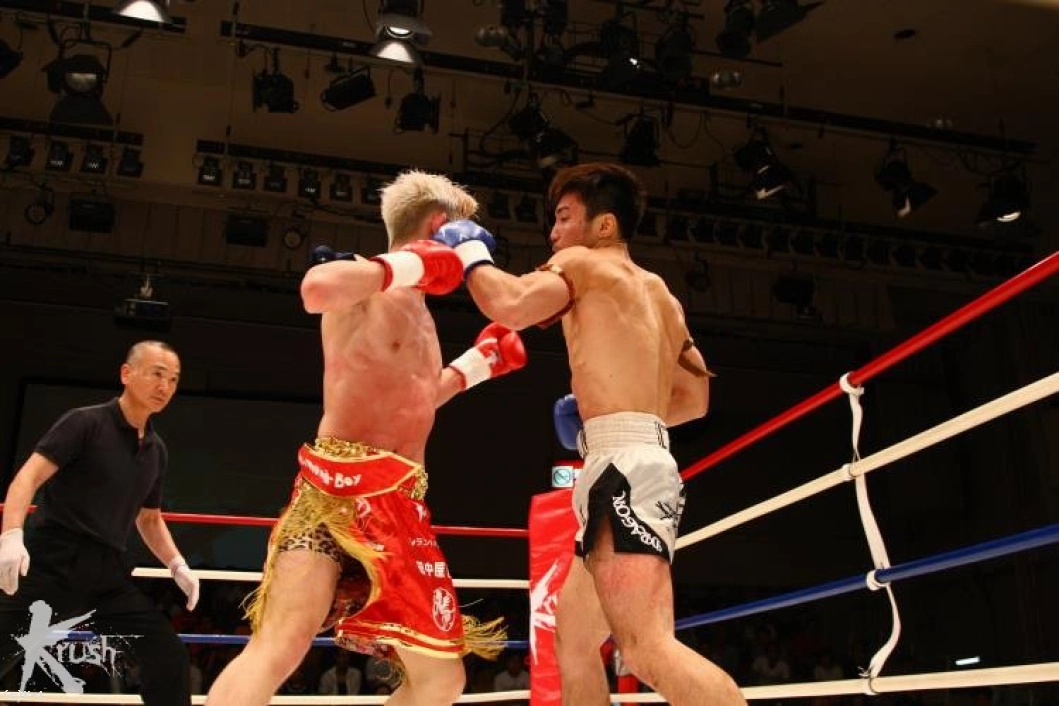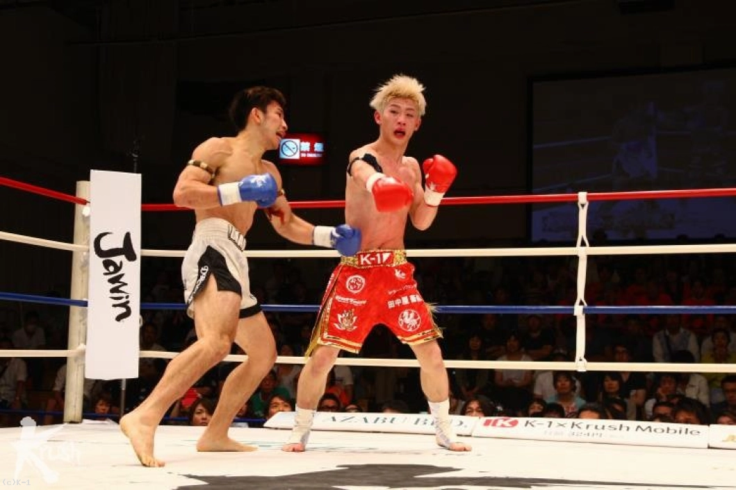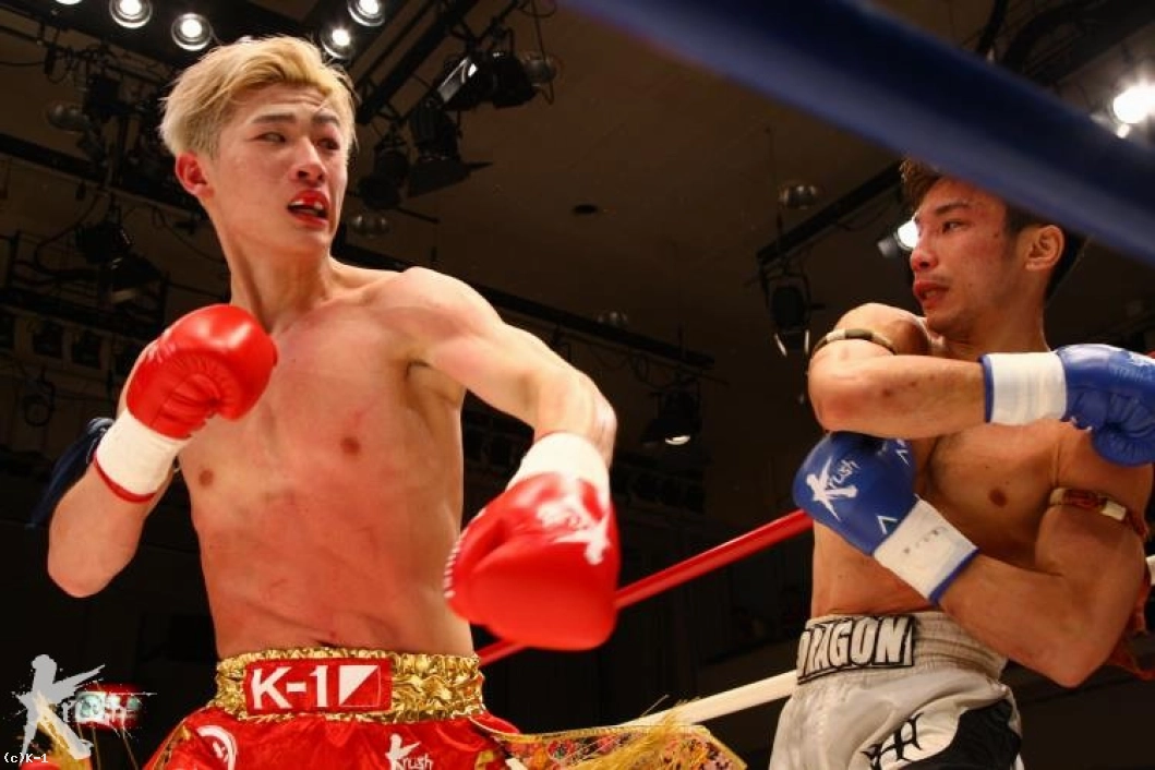 延長来るなとも思ったんですけど、ジャッジが決めた判定なので疑問はないです。(自分のラッシュについては?)手ごたえあったので。あとは向こうがアセって仕掛けてくると思ったので、そこに右ストレート合わせようとしたんですけど、それができなかったのは実力不足です。(試合の鍵になったのは?)やっぱり、気持ちだと思います。とにかく、勝とうと思ったんですけど。また、地に足つけて最初からがんばっていこうと思います。(今後の目標は?)イチから全部、技術も精神面も鍛え直して。こういう言い方はかっこわるいですけど、僕はまだ可能性を秘めていると思うので。ここからスタートだと思って、新たにがんばろうと思います。(試合後の龍児さんの言葉は?)地に足つけて頑張ろうと言われたので。最後、メインをもうちょっと盛り上げられればと思ったんですけど、そこも反省点で。勝てないのが一番の反省点なので、次は絶対にチャンピオンになれるようにがんばっていきたいと思います」