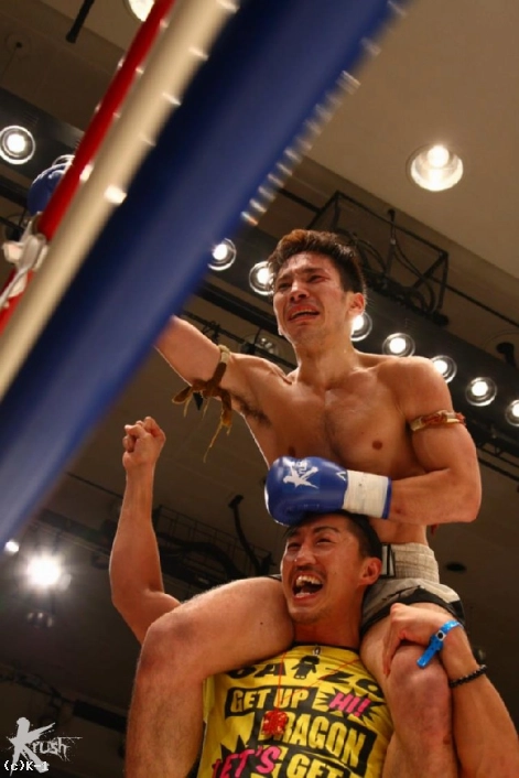 判定は29-28、29-29、29-28の2-0で佐々木。勝利と王座奪取が決すると、セコンドについた山崎秀晃が佐々木を肩車で抱え上げて祝福した。