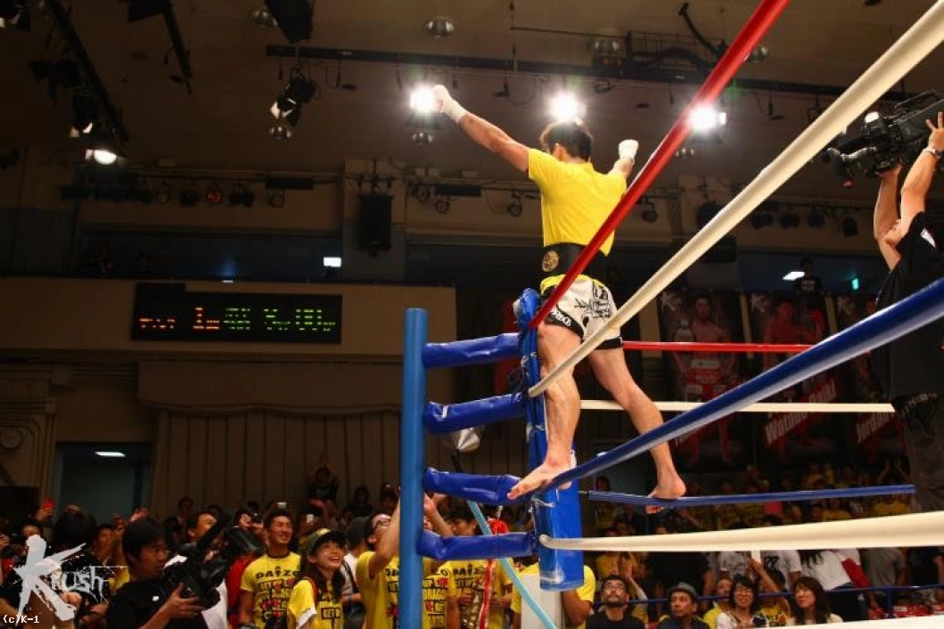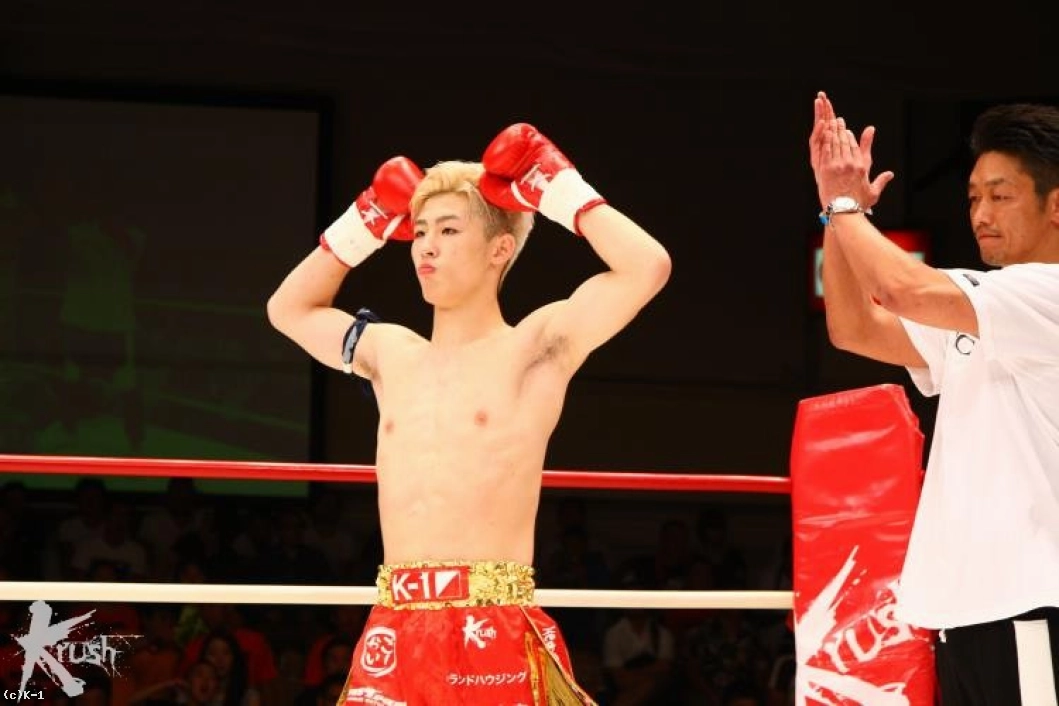 「(ベルトを獲った感想は?)とうとう来たなという思いと、やっぱり重たいなという思いでいっぱいですね。とにかく、うれしいの一言です。(試合の感想は?)本当に必死で、獲りたいという、ただそれだけの気持ちで。練習してきたことを信じて、仲間を信じて戦いました。試合のことはあんまり覚えてないですね。あとで映像を確認したいと思います。(ペースをつかんだのは2R?)1Rのファーストコンタクトで、相手に思っていた以上のものが正直なくて。それは秀さん(山崎秀晃)とスパーリングを積み重ねてきたおかげだと思います。1R最初から相手の攻撃が見えていたので、凄く冷静だったかなと思います。(ローのカットについては?)今後の課題としてローのカットを。ローにストレートを合わせようと思ったんですけど、相手がちょっと速くて、テンポが遅かったですね。(トーナメントの中で成長した部分は?)1回戦がドン底だったのが、この3試合を経て、ベルトを巻いてることで力を証明できたと思います。(今回の応援団は?)220人が来てくれました。それが一番の力になりました。試合前からメッセージくれたり、泣きそうになるというか。でも、ベルトを巻いて感謝の意を伝えたいというのが最優先だったので。(もう一つ上のベルトについては?)K-1という声もあると思うんですけど、まず何よりも大先輩である秀さんが巻いていたベルトを、さらに輝かせたいという思いがあります。このベルトの価値を高めたいです。(ここまで長かった?)長かったです。このト―ナメントでベルトを巻くことができなければ、もう巻けないという思いがあって。この先、格闘技を続けていくかどうか、そういう考えも頭の中にあったので、そういう部分で覚悟をもって、試合ができたトーナメントだと思います」