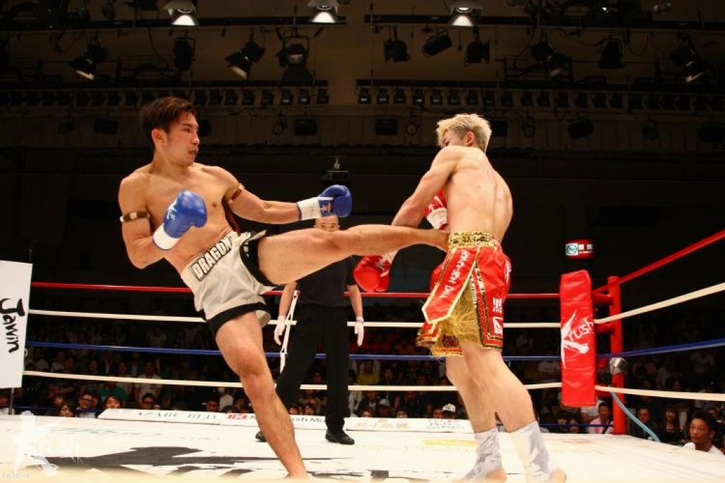 1R、ガード固める佐々木に平本はジャブから右ロー、左フックから右ローと先手で攻める。佐々木は左脚を蹴られるもガードの後ろからしっかり平本を見据える。そして左フック、左ジャブ、右ストレートとリターンして平本をとらえる。やや鼻を赤くした平本だが、佐々木の周囲をフットワークで回り、ジャブ、左右の連打、右ローと攻める。佐々木もガードからジャブ、ローと攻撃を返していく。しかし平本は左右4連打からローと先手でせめて手数で上回る。