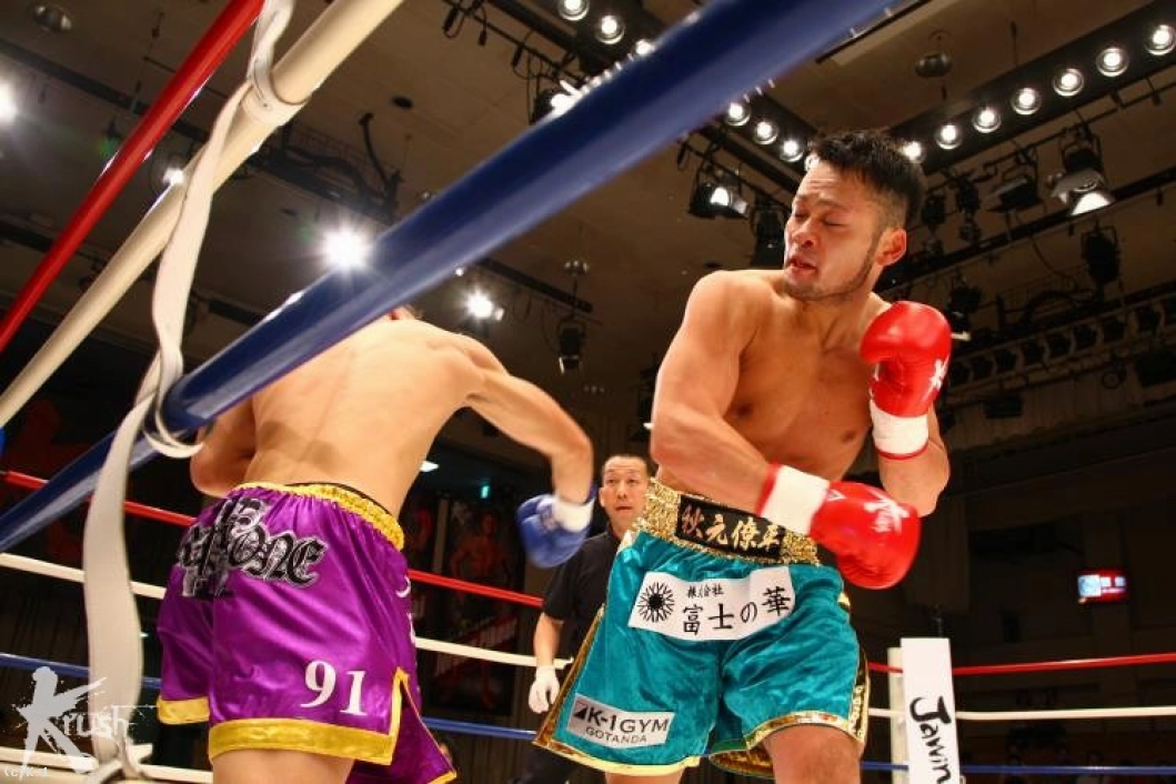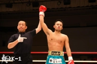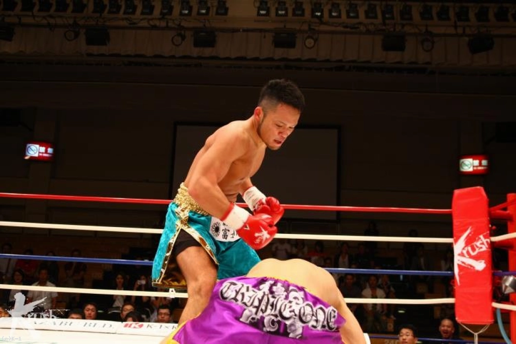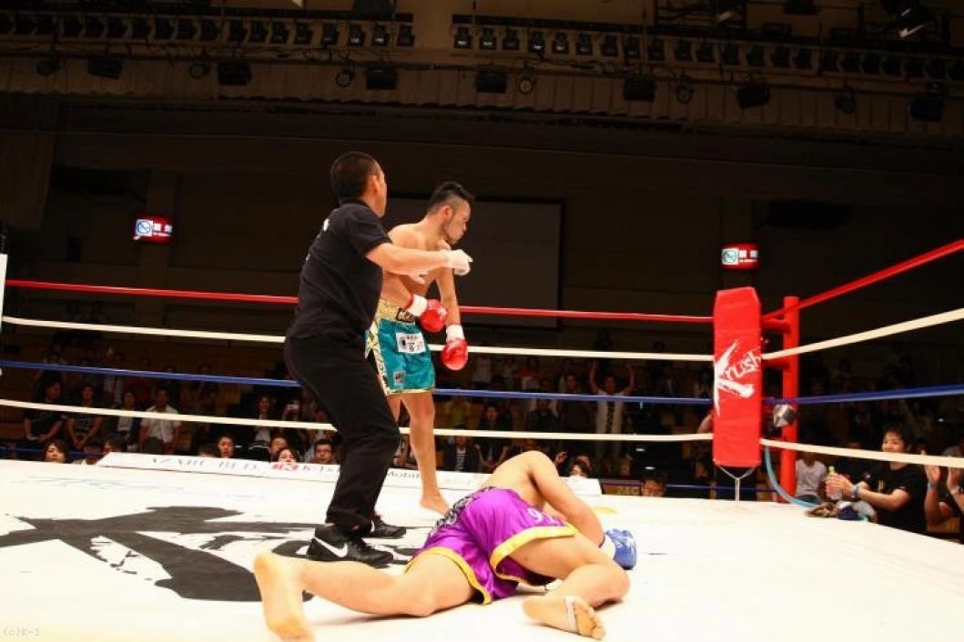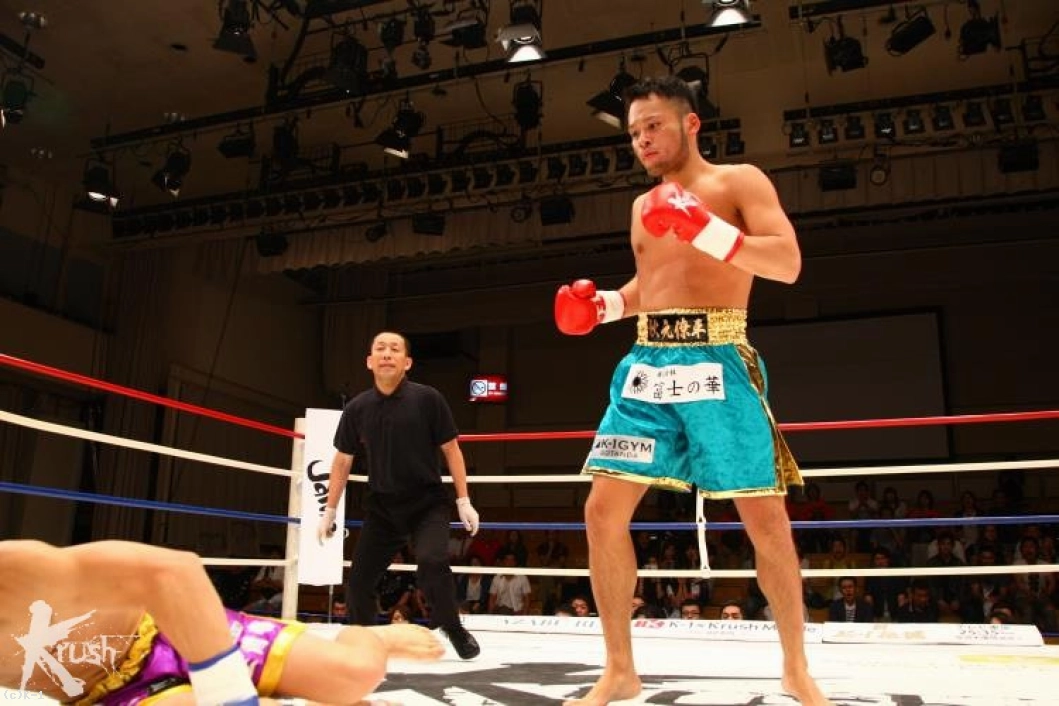 立ち上がった小久保に秋元は続けて右フックの強打を打ち込みダウンさせ、これで秒殺ノックアウト勝利となった。